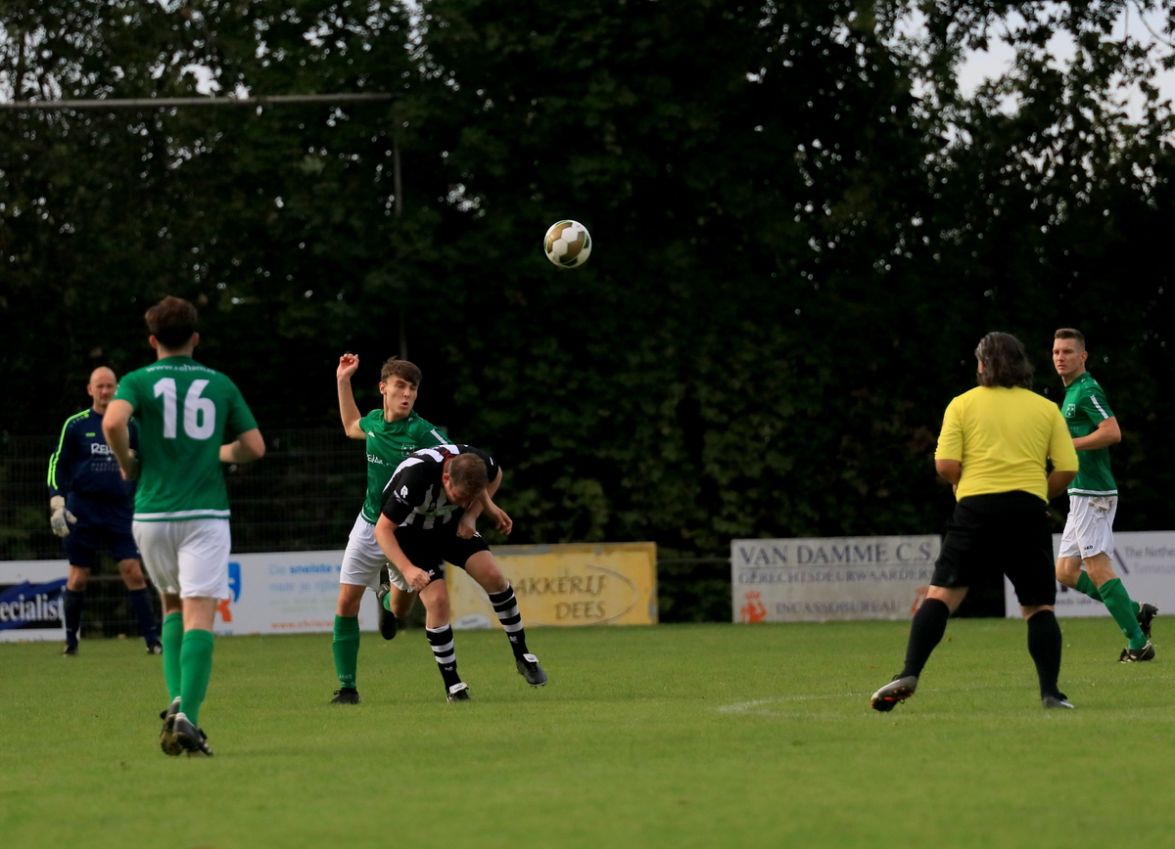 Om de aansluiting met de subtop niet te verliezen was het noodzaak om vandaag af te rekenen met Veere, dat net als onze groen-witten na drie duels nog steeds met lege handen stond. De nodige belangen stonden dus op het spel deze wedstrijd, die onder leiding stond van scheidsrechter H. Coskan uit Bergen op Zoom. Gedurende heel de wedstrijd waren onze groen-witten de betere ploeg, maar ondanks de nodige kansen die werden gecreëerd duurde het toch nog een klein half uur voordat ze zichzelf daarvoor wisten te belonen. De 1-0 voorsprong was tot dat moment een magere afspiegeling van het krachtsverschil, ondanks dat het spel van onze groen-witten ook lang niet altijd goed te noemen was. De magere 1-0 voorsprong werd pas na ruim een uur voetballen verdubbeld. Het was het moment dat de bezoekers de handdoek in de ring gooiden en dat werd onmiddellijk afgestraft met een derde treffer. Daarmee werd de wedstrijd in een vroeg stadium in het slot gegooid en konden onze groen-witten de wedstrijd rustig uitspelen. In de slotfase werd de score verder opgevoerd en bleef de teller uiteindelijk steken op vijf. Door deze ruime 5-0 overwinning zijn onze groen-witten gestegen van de 12e naar de 9e plaats, al zijn zo vroeg in de competitie de onderlinge verschillen nog zeer klein.