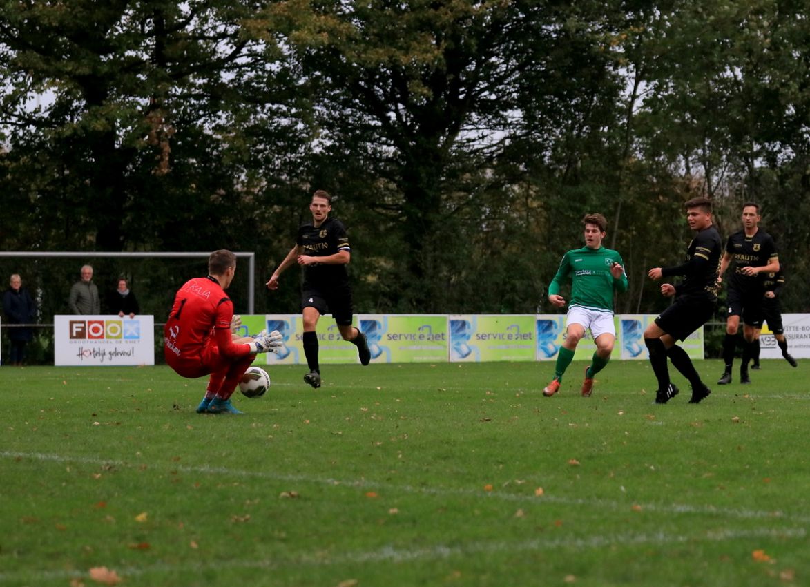De bezoekers konden in het laatste half uur de bal naar hartenlust rond laten gaan op zoek naar nog meer doelpunten. Toch lukte het onze groen-witten met de drie frisse krachten binnen de lijnen om af en toe van de eigen helft af te komen en dat leverde uiteindelijk toch nog een doelpunt op. Nadat invaller Tim Holleman in de 78e minuut voor 0-4 had gezorgd, was het Arno Scheele die vijf minuten later op aangeven van Senna Bunt de 1-4 op zijn naam schreef en daarmee de spreekwoordelijke eer redde voor zijn ploeg.