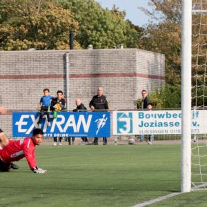 De thuisploeg was in het laatste half uur echter niet in staat om de gelijkmaker te forceren. Dat kwam mede doordat onze groen-witten zich enigszins herstelden van de matige start van de 2e helft. Er werd weer korter gedekt, waardoor Vlissingen, dat over individueel goede voetballers beschikt, minder aan voetballen toekwam. Nadat halverwege de 2e helft aanvoerder Koen Post geblesseerd het veld had verlaten en was vervangen door Cees van Tiel, kregen onze groen-witten weer meer controle over de wedstrijd en dat leverde ook meteen een aantal kansen op. Zo kreeg Lando Jorge twintig minuten voor tijd een aardige mogelijkheid, maar zijn schot verdween over het Vlissingen doel. Even later leek de mee opgekomen linksback Brian van Hoorn meer succes te hebben. Gelegenheidsdoelman Evangelista had echter een knappe redding in huis.