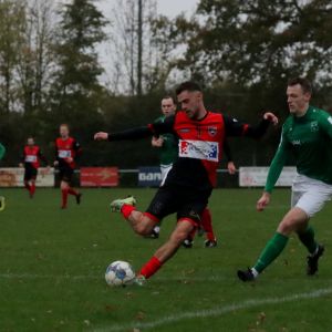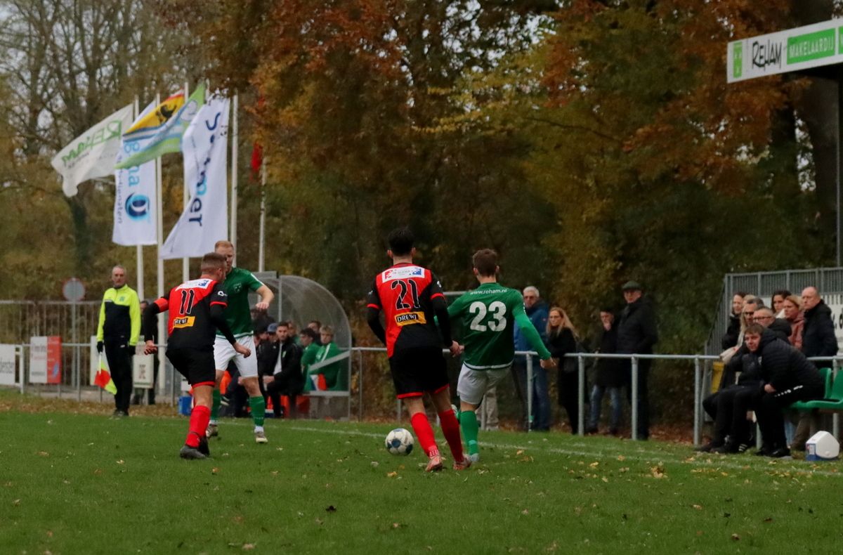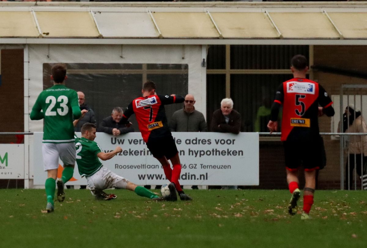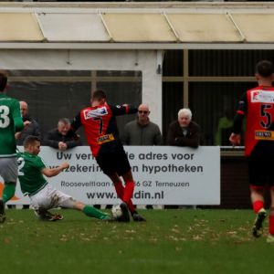 De wedstrijd leek te aan eindigen zoals die was begonnen, maar het venijn zat h’m duidelijk in de staart. In de eerste 45 minuten was het een gelijkopgaande strijd en er gebeurde heel weinig voor beide doelen. Het spel van onze groen-witten zag er iets verzorgder uit, maar dat wisten ze niet in kansen uit te drukken. Pas op slag van rust kreeg de ploeg van Fabian Wilson een tweetal mogelijkheden, maar die werden niet benut. In de 2e helft mochten onze groen-witten veelvuldig de bal hebben van Oostburg, die loerden op de counter. De Zaamslag defensie stond, op een enkel moment na, weer als een huis en dus bleef het tot een kwartier voor tijd 0-0. Toen brak Wout Hamelink de ban door de score te openen in het voordeel van Zaamslag. In de slotfase nam Oostburg de nodige risico’s, maar kansen leverde het niet meer op. Wel ontstond de nodige ruimte voor onze groen-witten, waar aanvankelijk niet van werd geprofiteerd. Pas in de 4e minuut van de toegevoegde tijd, toen Oostburg inmiddels met tien man stond na een rode kaart voor Glenn Volkers, besliste Lars de Jonge de wedstrijd.