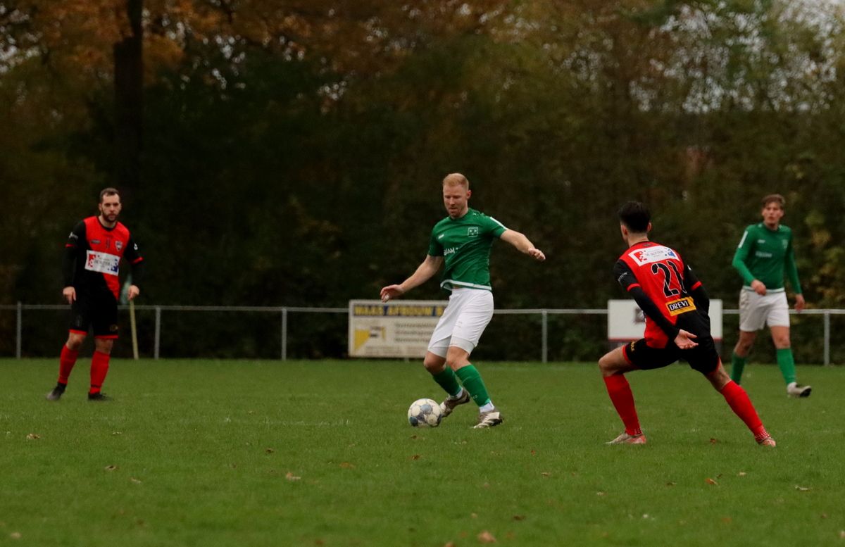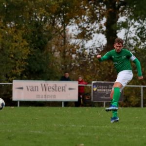 Net als de voorgaande overwinningen was ook de 2-0 zege op Oostburg zeer verdiend te noemen. De ploeg van trainer Fabian Wilson proeft eindelijk het zoet van het winnen. Maar dat gaat niet vanzelf, daar moet hard voor worden gestreden. Om dat steeds opnieuw te kunnen opbrengen moet iedereen zich voor de volle 100% inzetten, maar dat heeft de oefenmeester, die zelf in zijn tijd bij HSV Hoek er altijd vol voor ging, inmiddels voor elkaar gekregen. Bovendien heeft hij de luxe van een brede selectie. Weinig blessures en schorsingen, dus er is voldoende concurrentiestrijd en dat biedt ook de nodige kansen en mogelijkheden. Vandaag waren onze groen-witten de bovenliggende partij tegen Oostburg, waar Fabian Wilson vorig seizoen nog de scepter zwaaide en de ploeg dus door en door kende. Aan de andere kant waren de spelers van Oostburg erop gebrand om hun voormalige trainer de loef af te steken. Het beloofde dus een spannend duel te worden en dat werd het ook. Met Roy van der Staal terug in de basis na een korte vakantie te hebben genoten en met Harry Koster als leidsman werd het duel tegen Oostburg, de nummer 7 van de ranglijst, afgewerkt in een uiterst somber en grijs decor. Aan onze groen-witten de pittige taak om de zon te gaan laten schijnen op Sportpark ’t Durp en dat lukte uiteindelijk. Ook al was het niet altijd met even goed voetbal, onze groen-witten hadden wel een licht veldoverwicht en namen vanaf het begin het initiatief. Toch kwam de eerste speldenprik van de bezoekers, maar doelman Quinten Mel hoefde niet in actie te komen. Doordat Oostburg verdedigend de zaken goed voor elkaar had, wisten onze groen-witten geen opening te vinden en dus waren de kansen in de 1e helft op één hand te tellen. Nadat Mika Loof kort voor rust geblesseerd het veld had verlaten en was vervangen door Brian van Hoorn kreeg Michael Christina een eerste mogelijkheid, maar zijn inzet was een makkelijke prooi voor doelman Jochem van Kouwenberg. In de laatste minuut leek Koen Post de score alsnog te gaan openen toen hij gevaarlijk opdook voor de Oostburg goalie. De naar de rechterflank uitgeweken Wout Hamelink leverde een ragfijne voorzet af op de Zaamslag aanvoerder, die rakelings naast kopte. Zo zochten beide teams met de bekende brillenstand de kleedkamers op voor de thee.