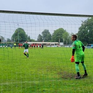 In een spannend duel leken onze groen-witten op weg naar de 2e ronde, maar werd het in de 3e minuut van de extra tijd alsnog gelijk. Ook de verlenging bracht geen beslissing (2-2), dus moest het met strafschoppen beslist worden en daarin was Bevelanders net iets beter.