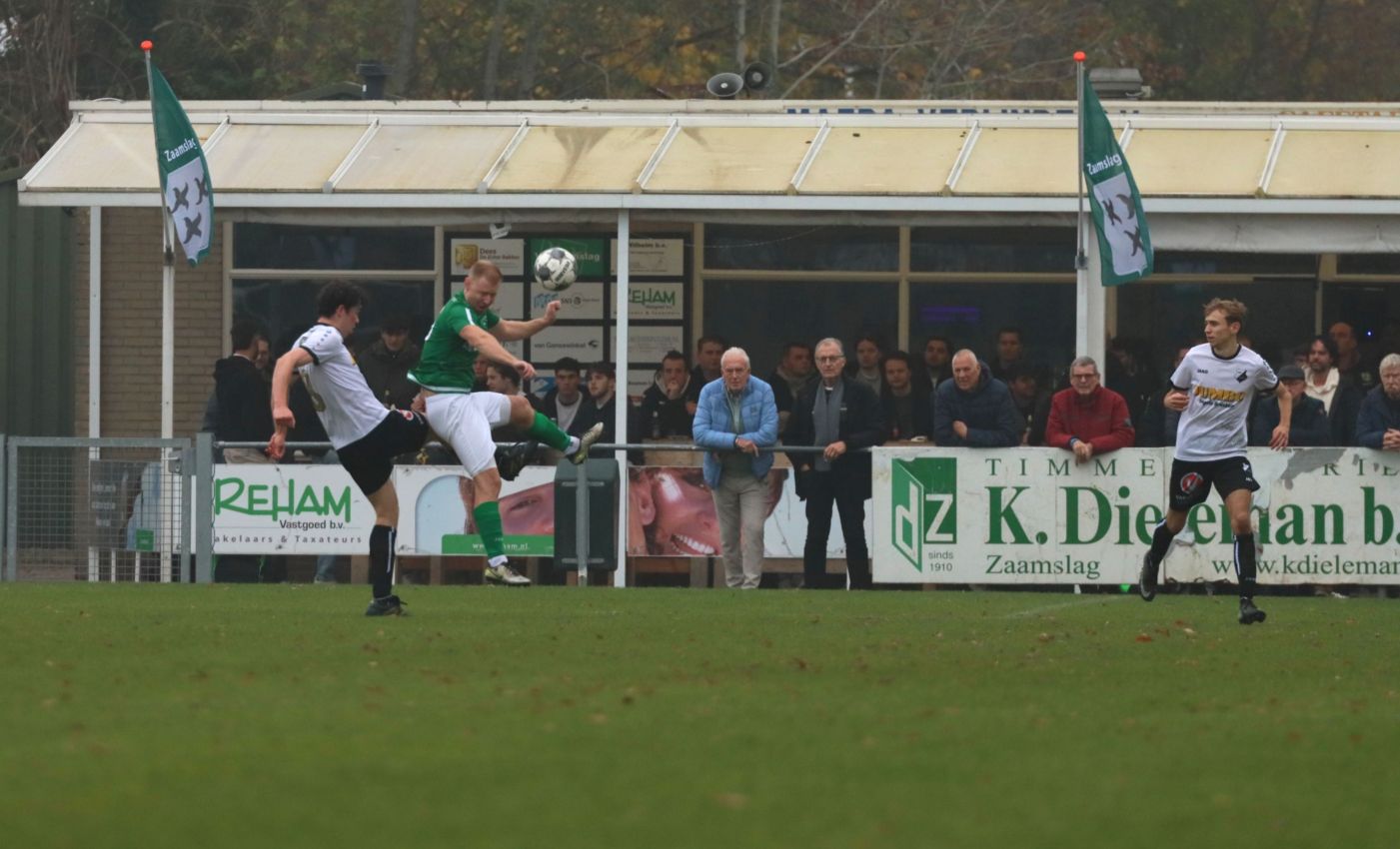 Gezien het spelbeeld over heel de wedstrijd een terechte 1-1 tussenstand. Maar daar nam de ploeg van Fabian Wilson geen genoegen mee, ze wilden meer. Met nog een kwartier op de klok bracht Jari de Jonge met een verre inworp de bal in het strafschopgebied. In eerste instantie werd er uitverdedigd, maar via Yannick van der Hooft kwam de bal weer voor de voeten van Jari de Jonge, die vervolgens een hoge voorzet afleverde. Cees van Tiel kopte achterwaarts (een bewuste kopbal, zo zei hij zelf na afloop) in de voeten van Lars de Jonge die plots oog in oog kwam met doelman Thijs van Houte. Als een volleerd spits tikte de rechtsback de bal beheerst langs de doelman in het doel. Met deze prachtige treffer zette hij zijn ploeg op een 2-1 voorsprong. Misschien iets teveel van het goede, maar daar maalde niemand om in het kamp van Zaamslag. De voorsprong had een paar minuten later zelfs nog ruimer kunnen uitpakken als Wout Hamelink op aangeven van Jari de Jonge van circa 15 meter had weten te scoren. Doelman Thijs van Houte was echter op zijn post en pareerde de inzet.