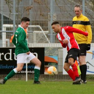 Onze groen-witten kwamen veel te laat tot leven en wat ze in de slotfase ook probeerden, het leidde allemaal tot niets. Ook niet vijf minuten voor tijd toen Hylke Stroo volledig vrijstaand voor het doel een afgemeten voorzet van Ruben de Haas te gehaast naast schoot. Diep in de blessuretijd, even na de afgekeurde goal, deed de thuisploeg nog een laatste verwoede poging en had daarmee bijna succes. Het schot van afstand leek in de uiterste hoek achter Dominique Pijpelink te verdwijnen. De Zaamslag doelman ging gestrekt naar de hoek en kreeg zijn hand nog net achter de bal waardoor hij zijn doel schoon hield. Het zou allemaal niet verdiend zijn geweest, want deze uitermate slechte wedstrijd verdiende eigenlijk geen winnaar. Onze groen-witten hebben hiermee een kans laten liggen om weg te lopen bij de concurrentie. Nu maar hopen dat het volgende week een stuk beter zal zijn, want dan mogen beide ploegen het nog een keer tegen elkaar opnemen. Op Sportpark ’t Durp staat dan het inhaalduel van 19 januari op het programma.