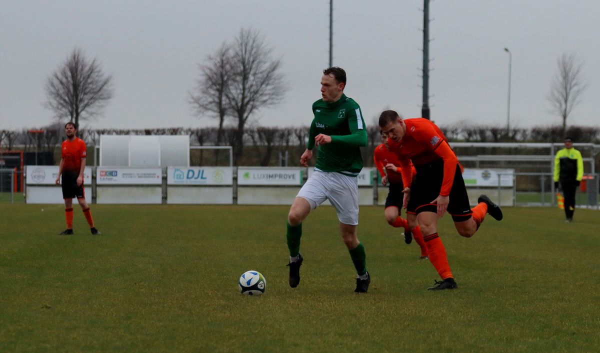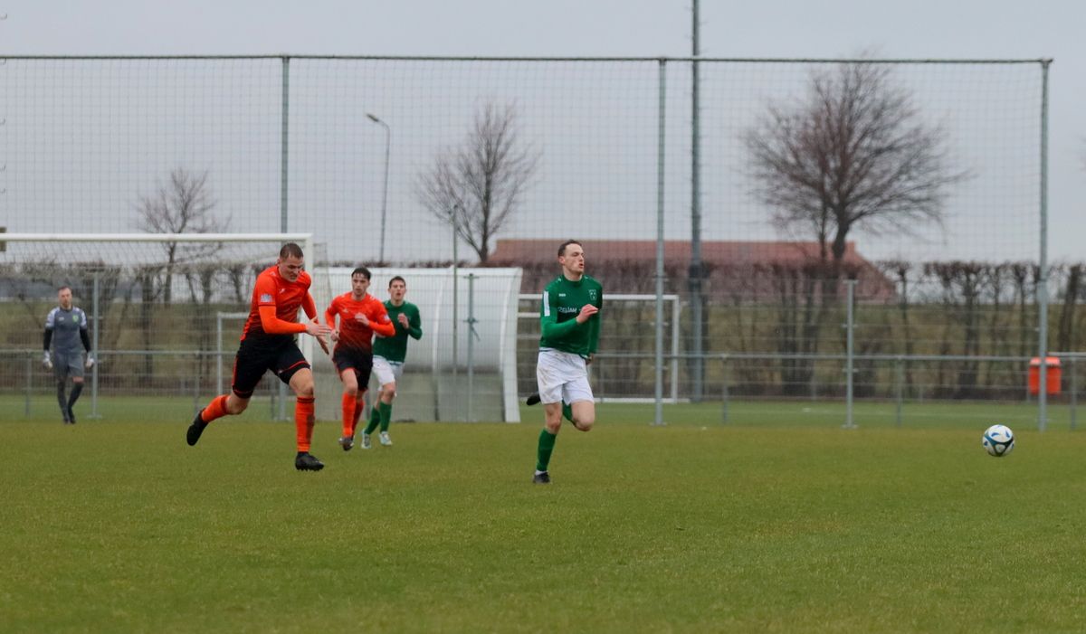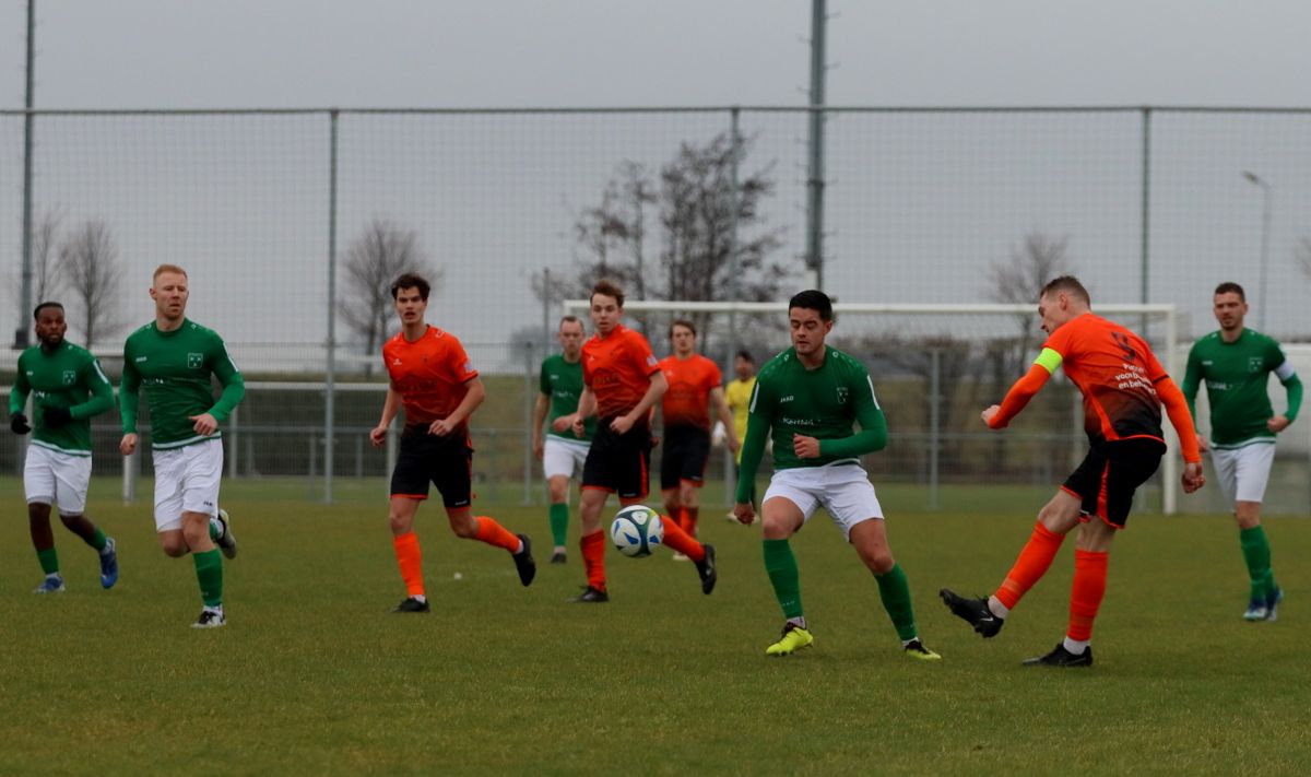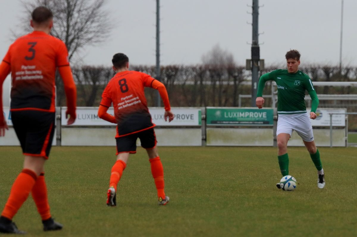 Wolfaartsdijk kwam iets beter uit de kleedkamer dan onze groen-witten, die nog steeds met dezelfde elf op zoek gingen naar een nieuwe voorsprong. In het eerste kwartier was de thuisploeg meer op de helft van onze groen-witten te vinden, maar de solide ogende defensie gaf weer weinig weg. Gevaar was er met regelmaat wel voor het doel van Wolfaartsdijk. Een uitval via Wout Hamelink eindigde na een kleine tien minuten in de handen van doelman Gomes. Pas na ruim een uur wedstrijd kreeg de thuisploeg een behoorlijke kans, maar via via verdween de bal in de veilige handschoenen van Quinten Mel. Het antwoord van onze groen-witten liet weer niet lang op zich wachten. Wederom was het Wout Hamelink die het de Wolfaartsdijk defensie knap lastig maakte. Uiteindelijk trof hij weer doelman Gomes op zijn pad, die met de voet redding bracht. Nog steeds stond de 1-1 stand op het scorebord en inmiddels waren de laatste twintig minuten aangebroken. Op dat moment kreeg de thuisploeg de kans om op voorsprong te komen, maar een kopbal in kansrijke positie verdween over het doel. De spanning nam zienderogen toe, zou er nog een winnaar komen ? Die kwam er uiteindelijk. Het waren onze groen-witten die op het middenveld de aanvalsopbouw verlegden van rechts naar links en vervolgens over de linkerflank razendsnel toesloegen. Brian van Hoorn ontdeed zich van zijn tegenstander en stuurde Wout Hamelink diep. De vleugelaanvaller had er goed het oog in waar zijn medespelers zich bevonden. Hij schoof de bal voor de voeten van Michael Christina, die goed was gevolgd, niet nadacht en uithaalde. Zijn schot werd onderweg nog aangeraakt door een Wolfaartsdijk verdediger waardoor doelman Gomes het nakijken had. De slotminuten waren vervolgens heel spannend, maar de 1-2 bleef op het scorebord staan. Uiteindelijk een meer dan verdiende zege voor de ploeg van Fabian Wilson, die in verband met alle pijntjes her en der een weekje rust krijgt.