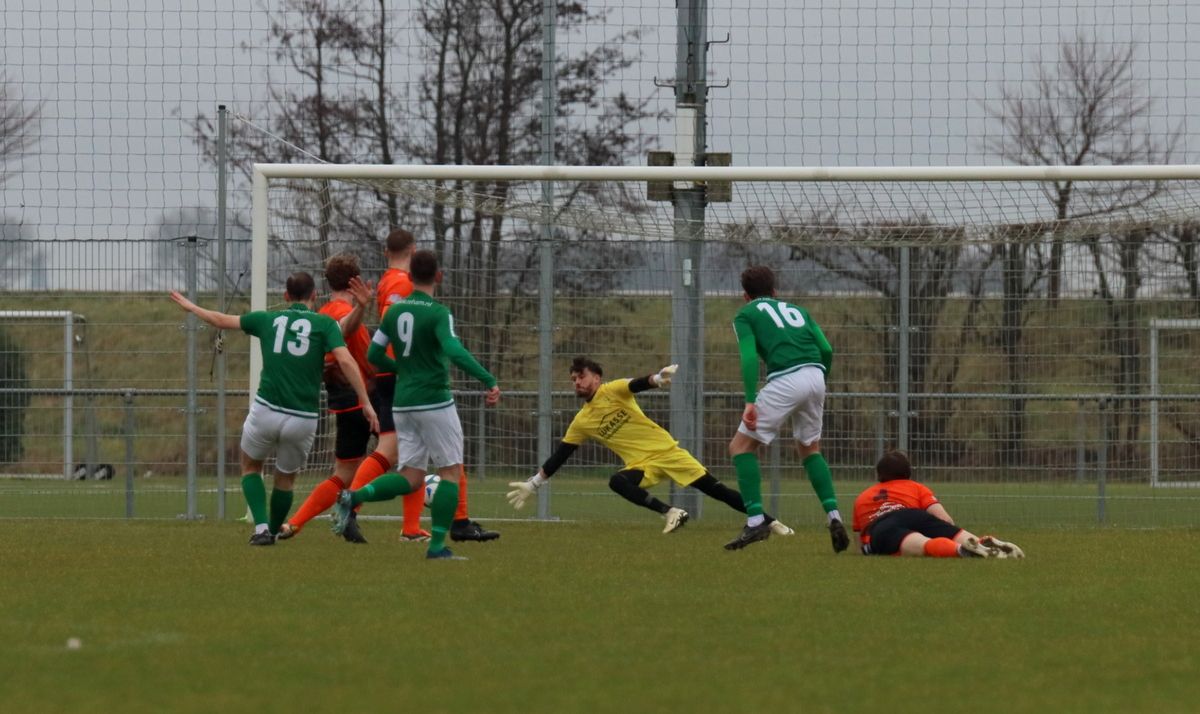”Never change a winning team”, moet trainer Fabian Wilson in aanloop naar deze wedstrijd hebben gedacht, want hij stuurde dezelfde basis elf in exact dezelfde formatie het veld in voor het duel met de nummer vier van de ranglijst als vorige week tegen Lebo. Behalve dat iedereen vorige week goed had gepresteerd, had hij die mogelijkheid ook omdat iedereen fit genoeg was om te starten. Zelfs aanvoerder Koen Post was van de partij. Afgelopen donderdag nog koorts, maar inmiddels voldoende herstelt om te kunnen spelen. En hij hield het uiteindelijk ruim 80 minuten vol. Het vertrouwen dat trainer Wilson in zijn spelers had, betaalden ze hem dubbel en dwars terug met een knappe en verdiende overwinning. Zeker in het eerste bedrijf waren onze groen-witten oppermachtig en creëerden de nodige kansen op de uitstekend bespeelbare grasmat in Wolfaartsdijk. Het begon al na vijf minuten met een schot van Cees van Tiel dat via de vingertoppen van doelman Carlos Fernando Gomes en de paal naast het doel verdween. De daaropvolgende hoekschop werd door Sam Cornelissen ingekopt, maar scheidsrechter Harun Coskan annuleerde de treffer. Onduidelijk waarom hij het doelpunt afkeurde, maar mogelijk vanwege hinderen van de doelman. Onze groen-witten lieten zich er niet door verstoren en gingen op zoek naar een geldige treffer, maar die zou lang op zich laten wachten. Met reddingen op een schot van Michael Christina en even later op een schot van Wout Hamelink en de daaropvolgende rebound van Michael Christina, groeide doelman Gomes uit tot “man of the match” aan de kant van de thuisploeg. Dit alles binnen het eerste kwartier.