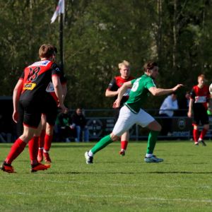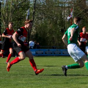Door een royale 0-4 zege van onze groen-witten op Oostburg, de nummer 9 van de ranglijst, ligt vier speelronden voor het einde van de competitie de strijd om de felbegeerde 3e plaats nog steeds helemaal open. Oostburg, dat de punten nog hard nodig heeft, zal in de resterende wedstrijden nog volop aan de bak moeten in de strijd om lijfsbehoud.