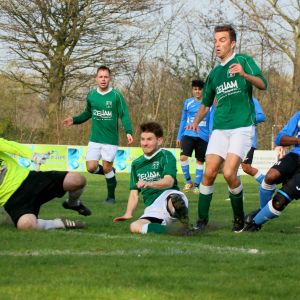 Een domper voor onze groen-witten, die in de achtervolging konden. Ze moesten echter in eerste instantie het antwoord schuldig blijven. De bezoekers waren in deze fase de betere ploeg en hadden in de 55e en 57e minuut zelfs de 0-2 op de schoen. Eerst was het aanvoerder James Beije die rakelings naast besloot en even later moest Dominique Pijpelink uit zijn doel komen om een volgende kans onschadelijk te maken. Onze groen-witten leken lusteloos, inspiratieloos of hoe je het ook een naam wil geven.