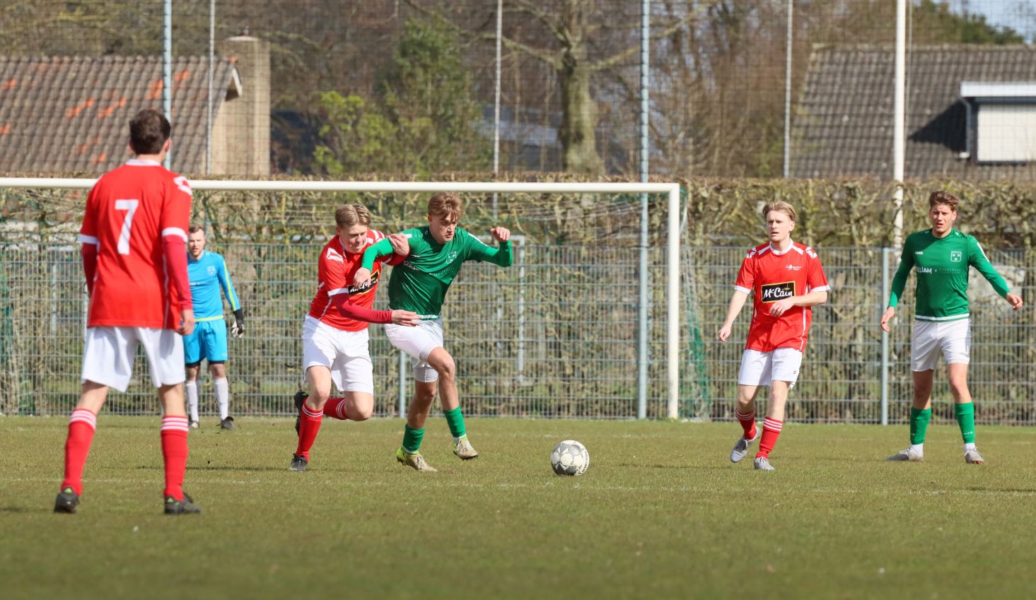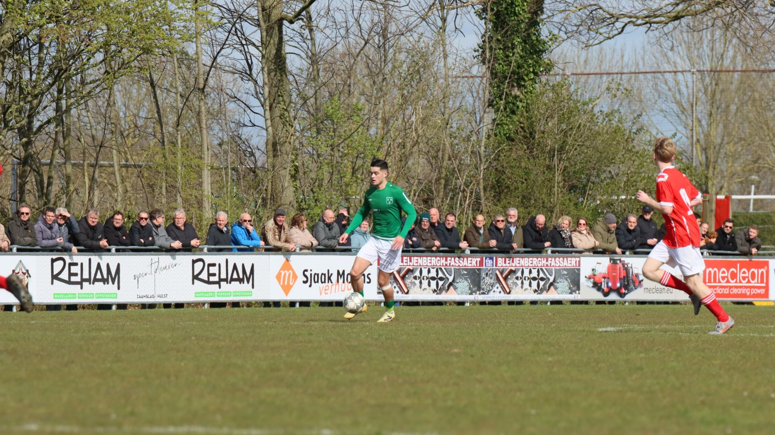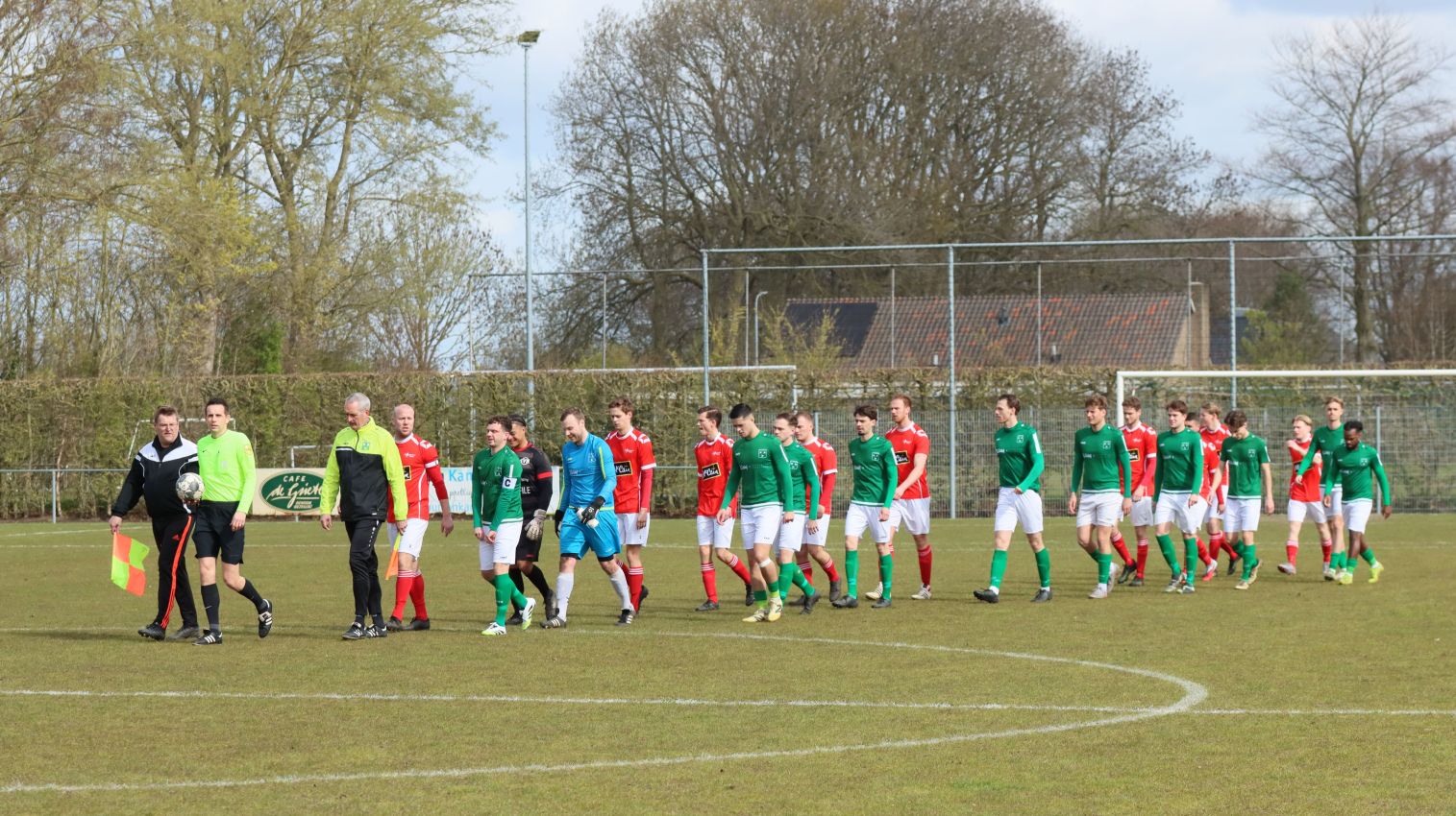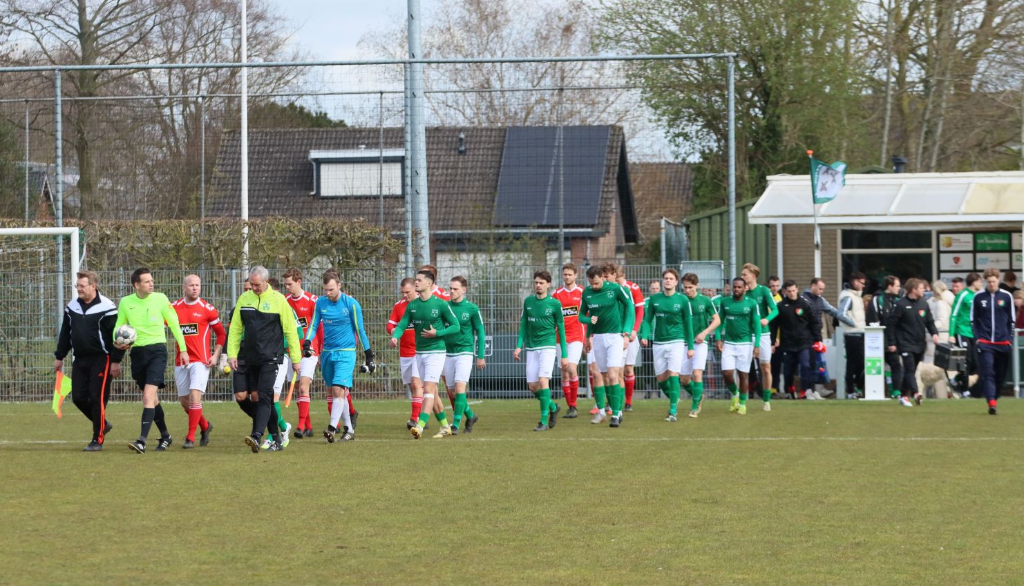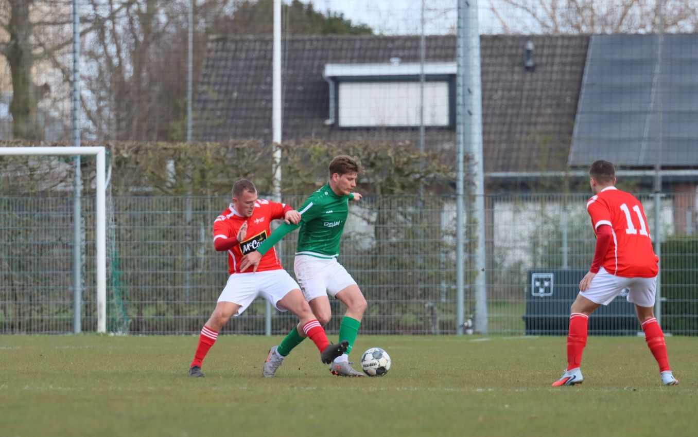 Naarmate de wedstrijd vorderde namen onze groen-witten het voortouw. Ze domineerden en dicteerden de wedstrijd. Hele grote kansen leverde het overwicht echter niet op. Halverwege het eerste bedrijf leek de rush van Wout Hamelink veelbelovend. Na een balonderschepping op eigen helft lanceerde de vleugelaanvaller zichzelf en kon oprukken tot het strafschopgebied van de bezoekers. Helaas kwam de voorzet die volgde niet aan op de gewenste bestemming. Zo verliepen de eerste vijfentwintig minuten redelijk naar wens voor de ploeg van Fabian Wilson. Dat was tegelijkertijd het moment dat de bezoekers voor het eerst dreigend in de buurt van het doel van Dominique Pijpelink verschenen. Verdedigend stond het echter weer als een huis en in dit geval was het Fabrice van Holsbeke die deskundig ingreep.