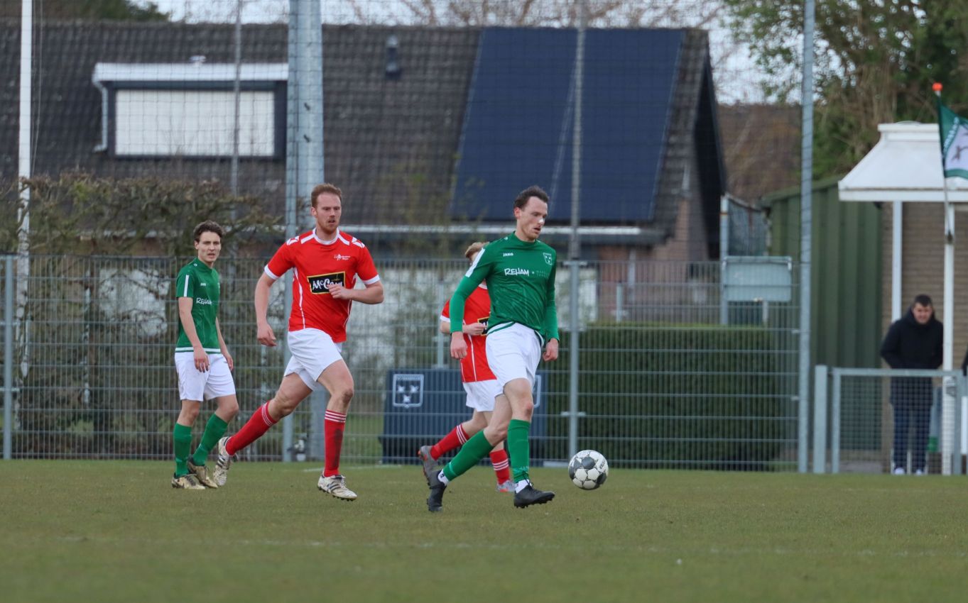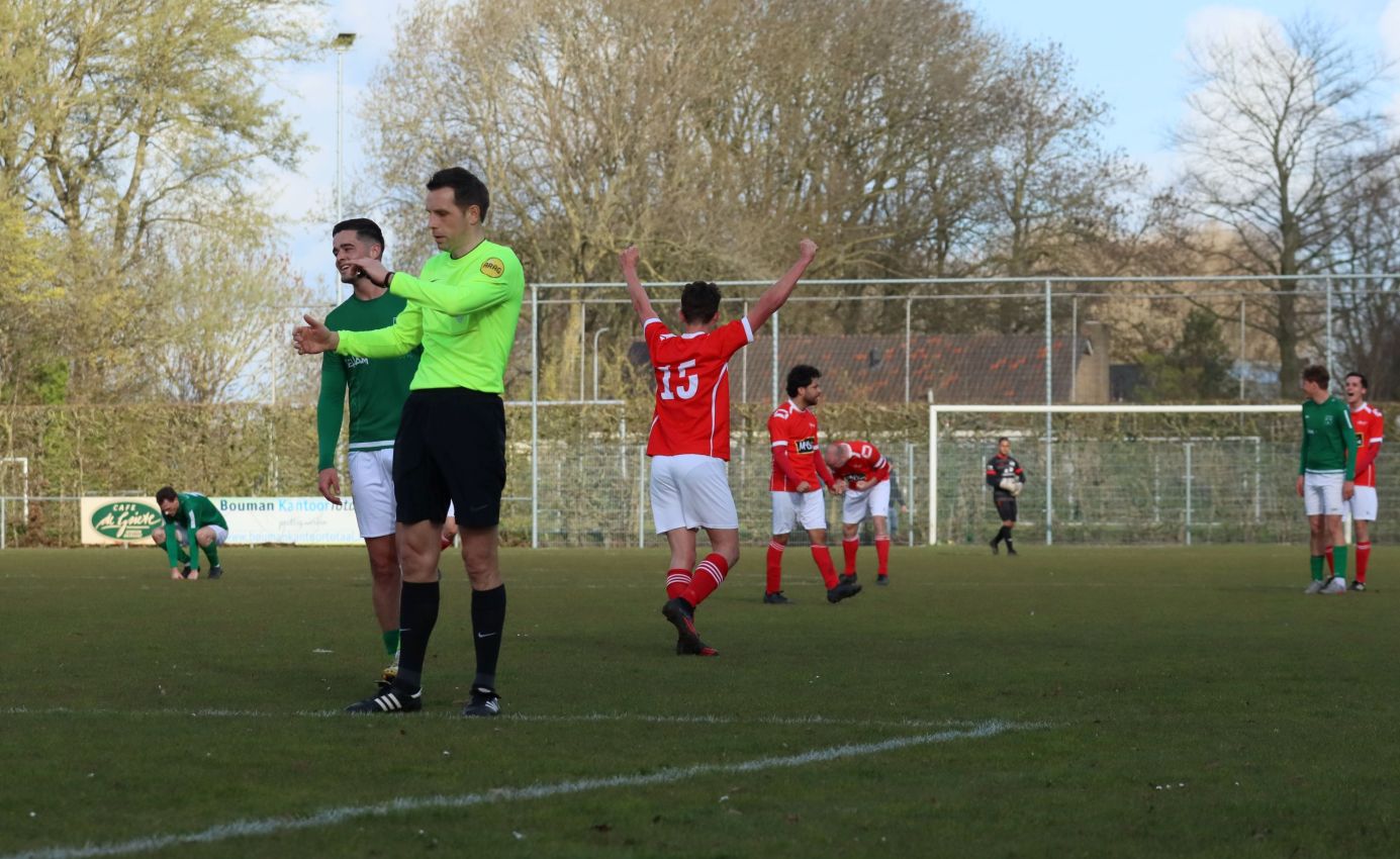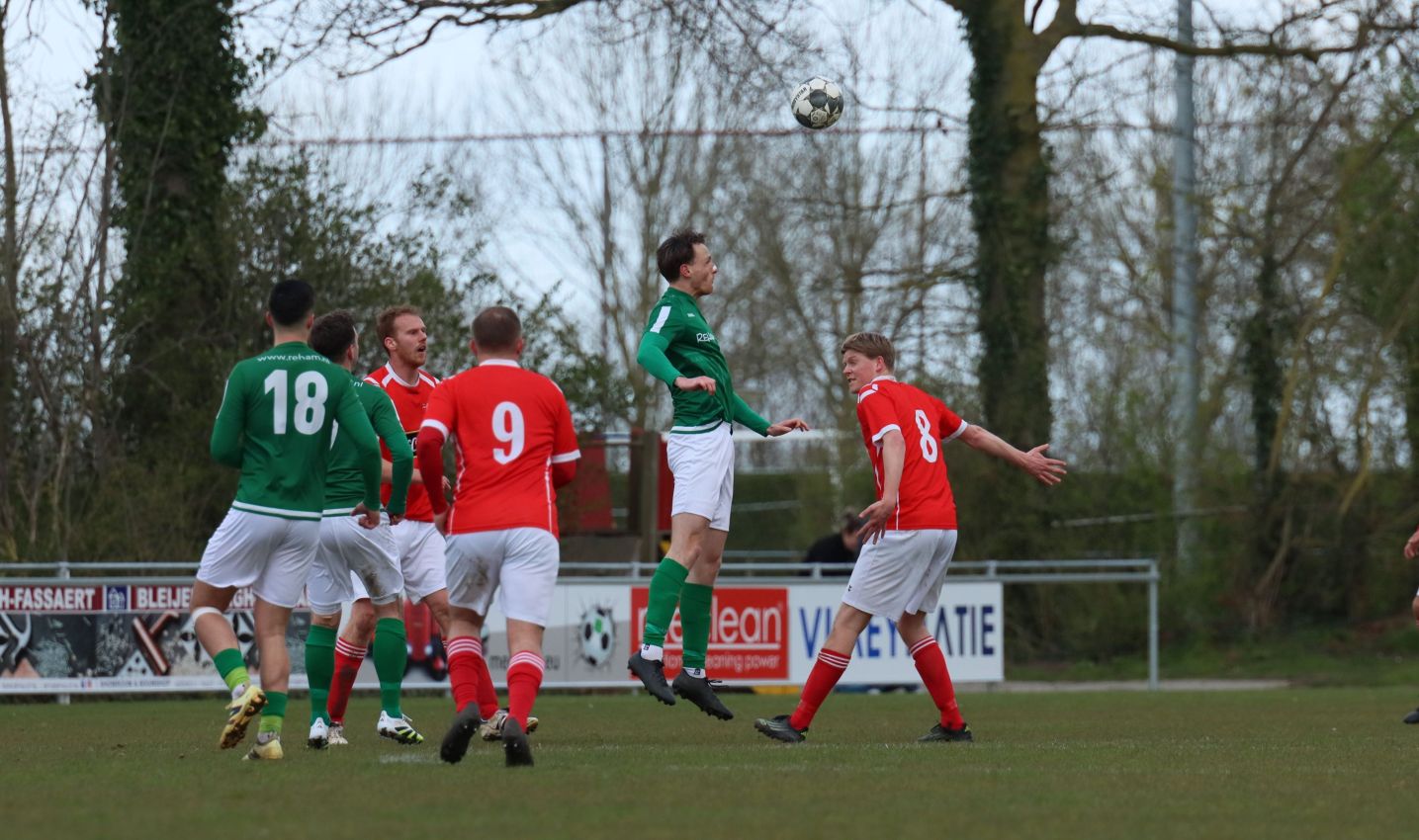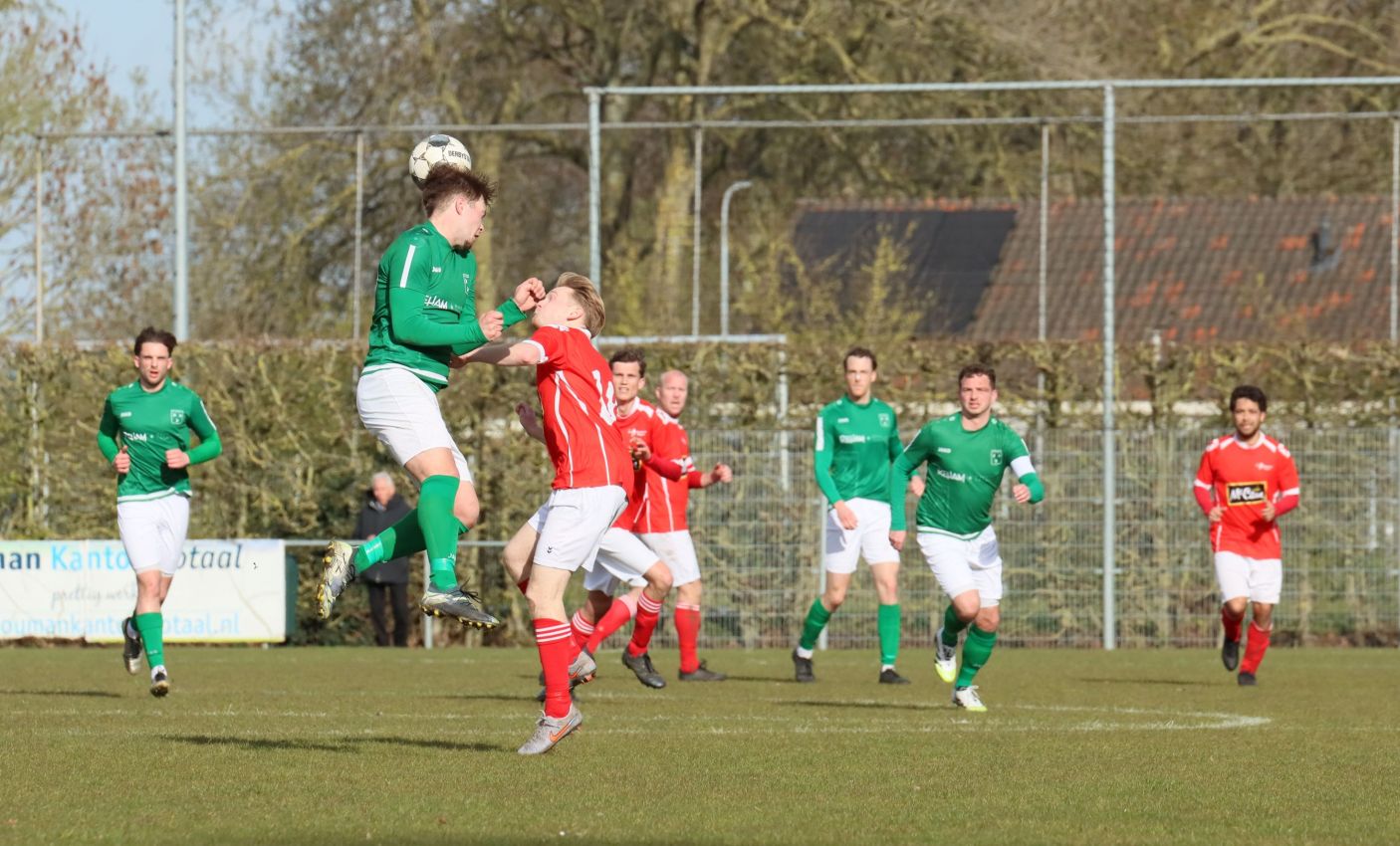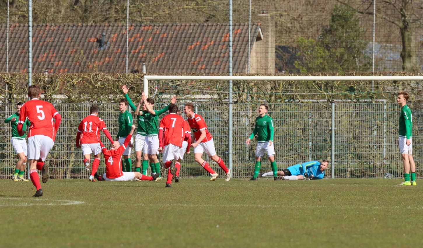 Met nog ruim twintig minuten op de klok moesten onze groen-witten risico gaan nemen. Ze schakelden over op één op één verdedigen en Arno Scheele schoof op naar voren. Zijn voorzet leverde een kleine twintig minuten voor het verstrijken van de officiële speeltijd bijna de gelijkmaker op. Lars de Jonge dook op bij de tweede paal, maar kopte in kansrijke positie ruim naast het doel van Dillian Vink.