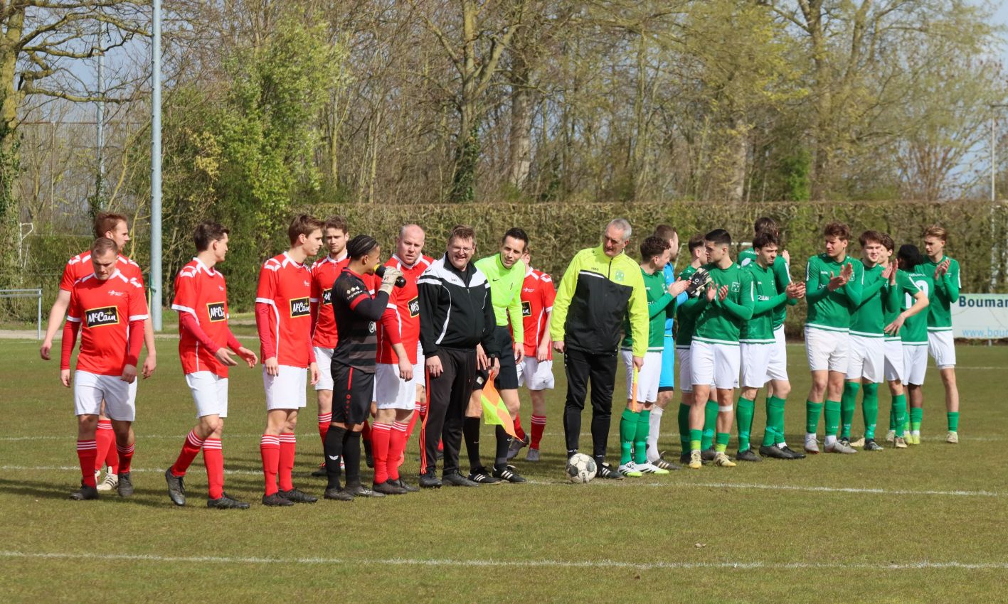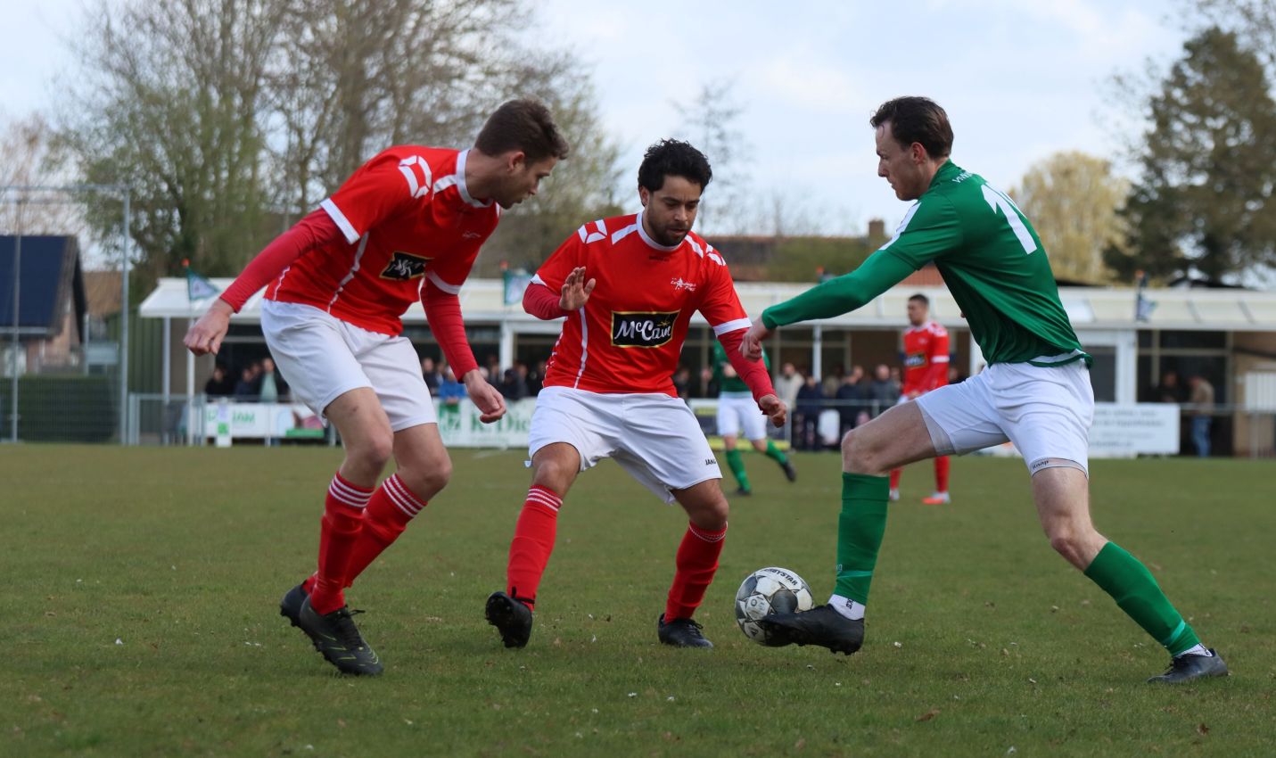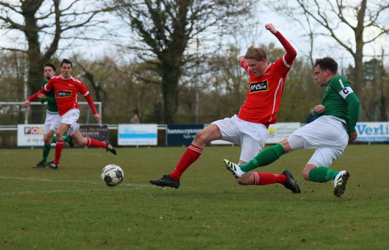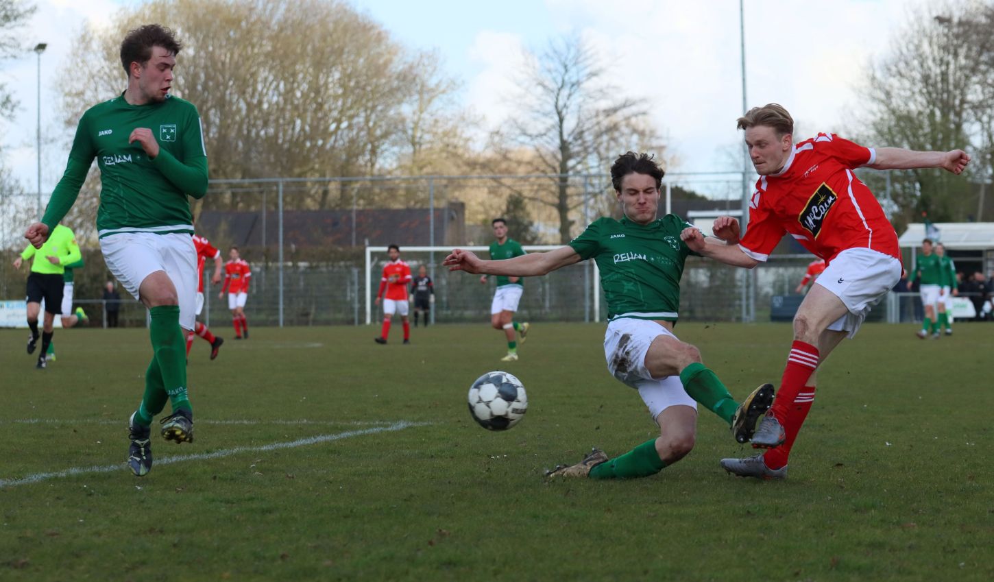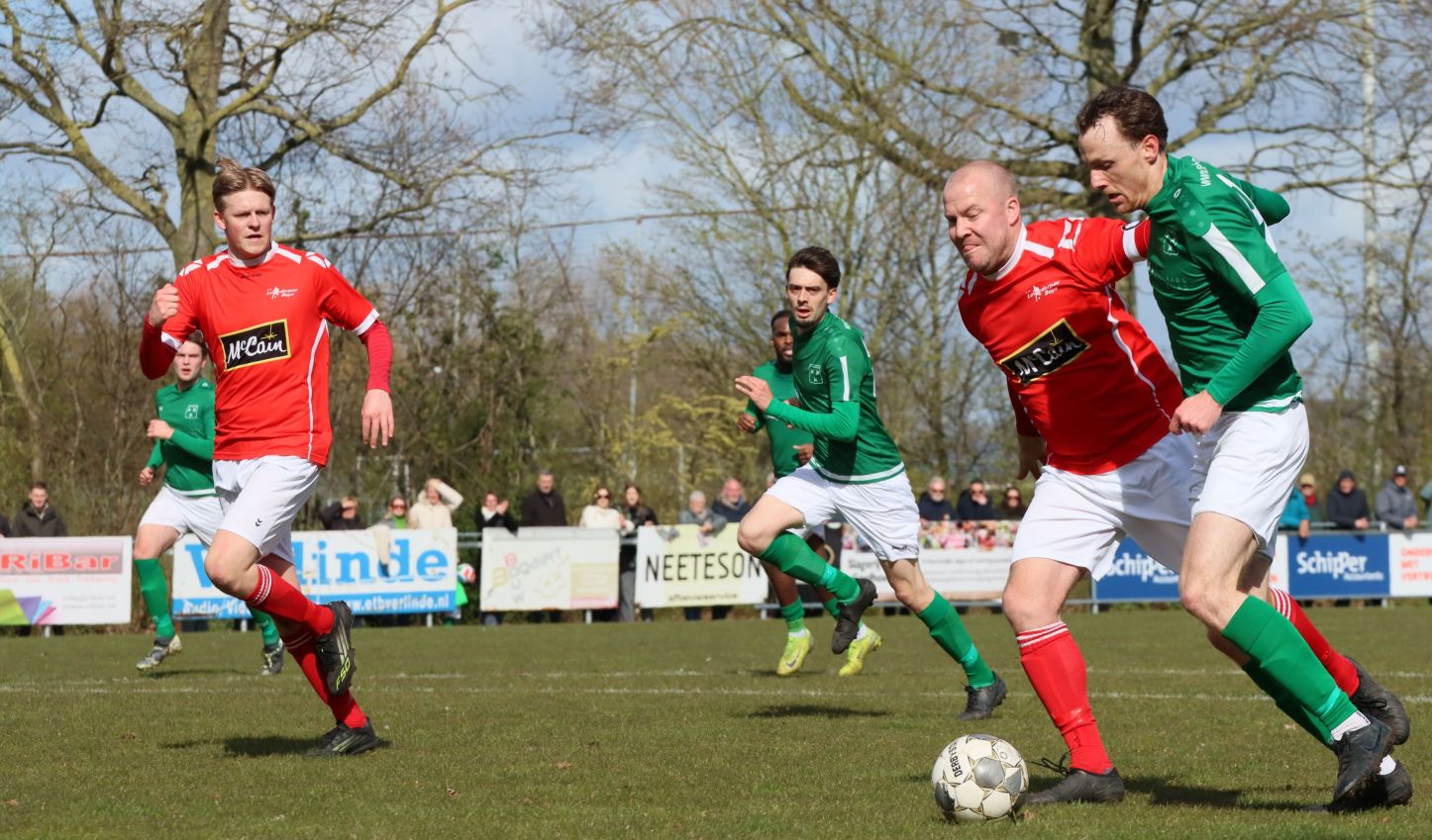 Met nog ruim twintig minuten op de klok moesten onze groen-witten risico gaan nemen. Ze schakelden over op één op één verdedigen en Arno Scheele schoof op naar voren. Zijn voorzet leverde een kleine twintig minuten voor het verstrijken van de officiële speeltijd bijna de gelijkmaker op. Lars de Jonge dook op bij de tweede paal, maar kopte in kansrijke positie ruim naast het doel van Dillian Vink.
