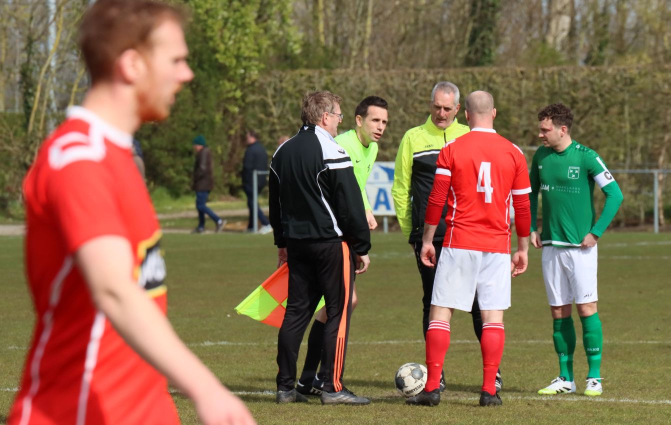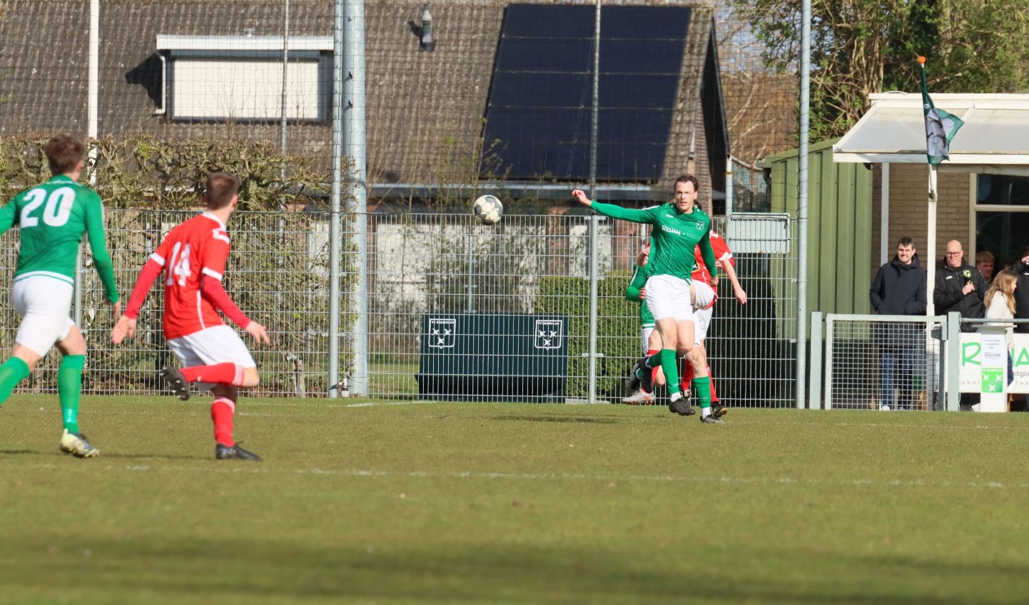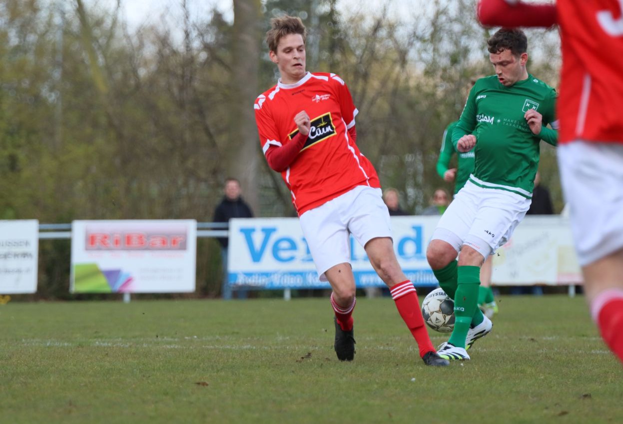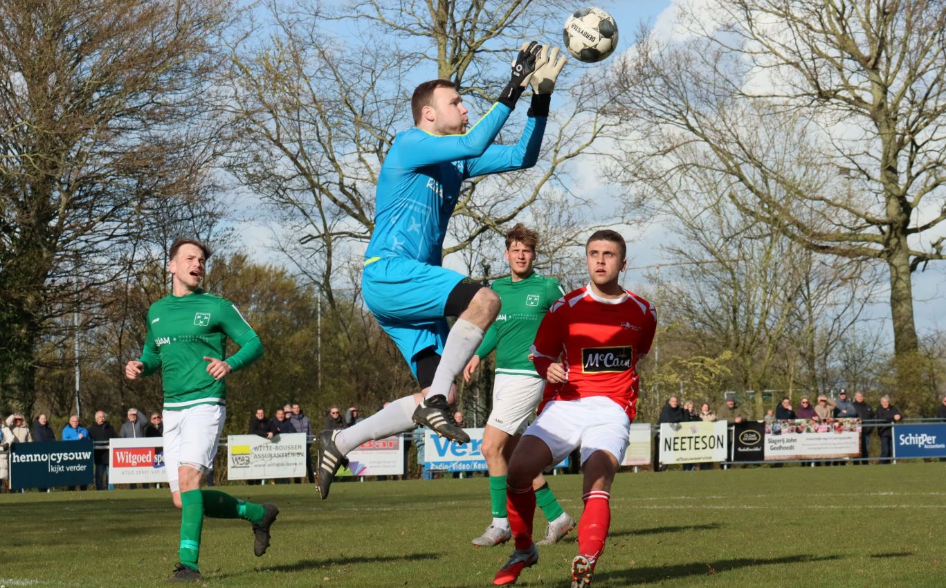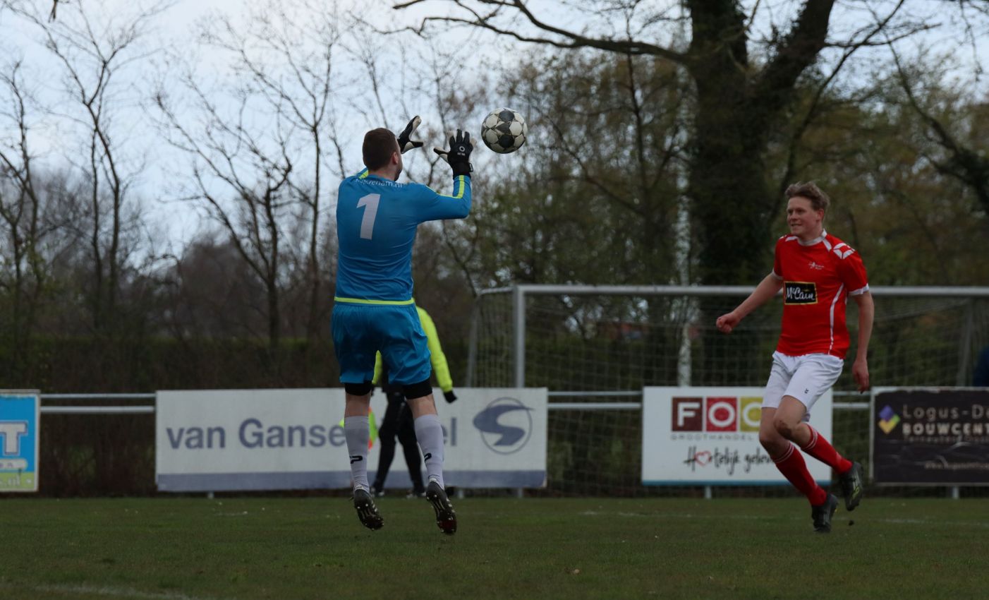 Met nog ruim twintig minuten op de klok moesten onze groen-witten risico gaan nemen. Ze schakelden over op één op één verdedigen en Arno Scheele schoof op naar voren. Zijn voorzet leverde een kleine twintig minuten voor het verstrijken van de officiële speeltijd bijna de gelijkmaker op. Lars de Jonge dook op bij de tweede paal, maar kopte in kansrijke positie ruim naast het doel van Dillian Vink.