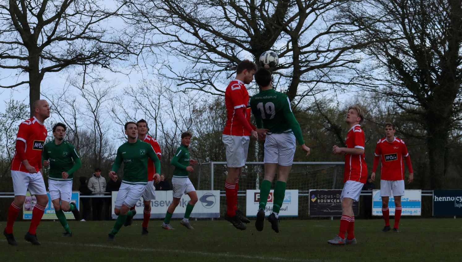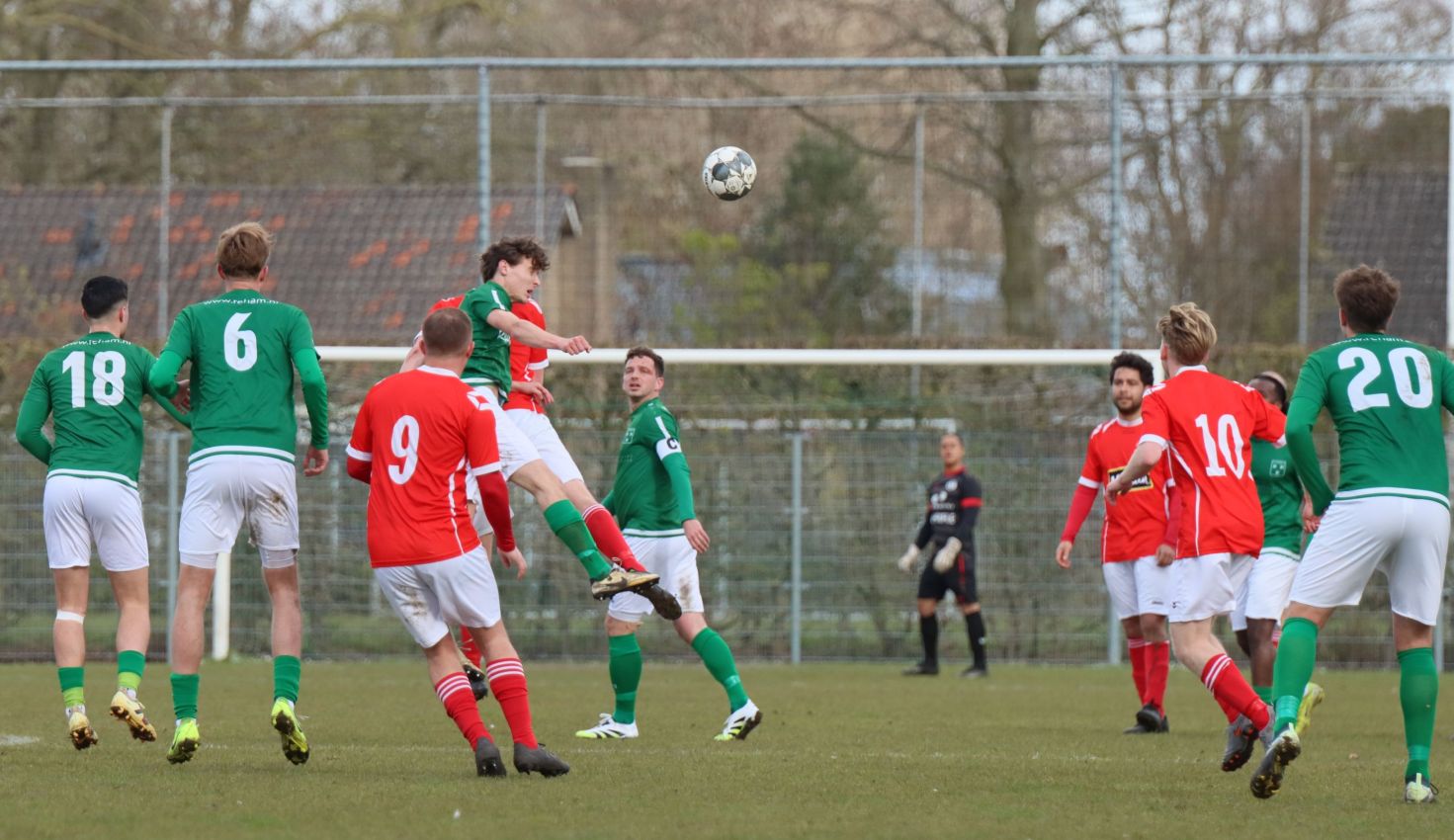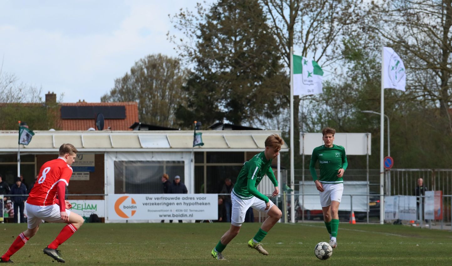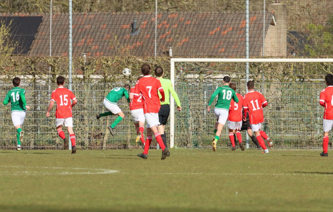 Met nog ruim twintig minuten op de klok moesten onze groen-witten risico gaan nemen. Ze schakelden over op één op één verdedigen en Arno Scheele schoof op naar voren. Zijn voorzet leverde een kleine twintig minuten voor het verstrijken van de officiële speeltijd bijna de gelijkmaker op. Lars de Jonge dook op bij de tweede paal, maar kopte in kansrijke positie ruim naast het doel van Dillian Vink.