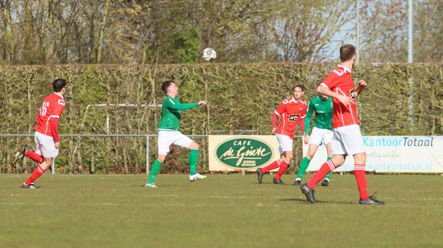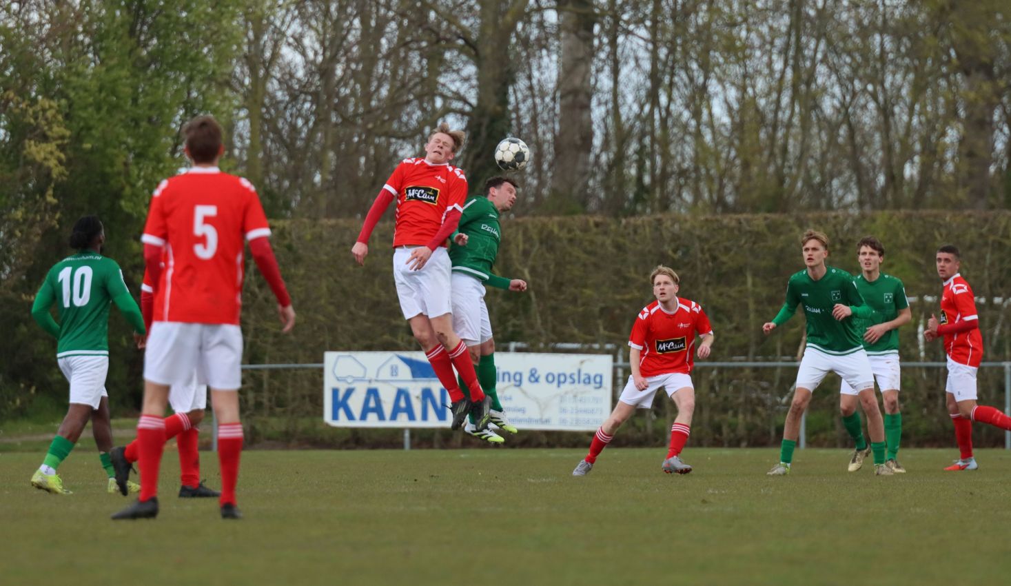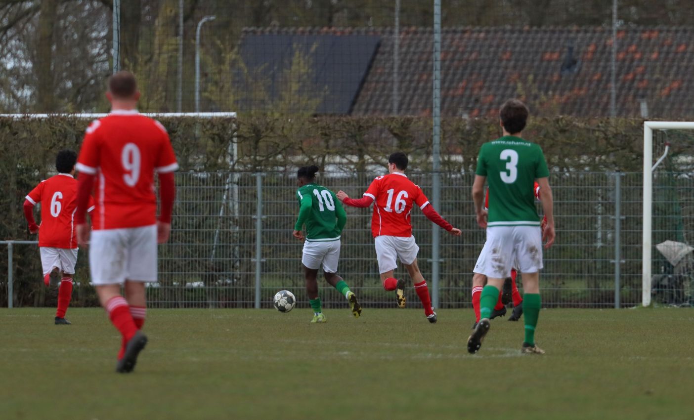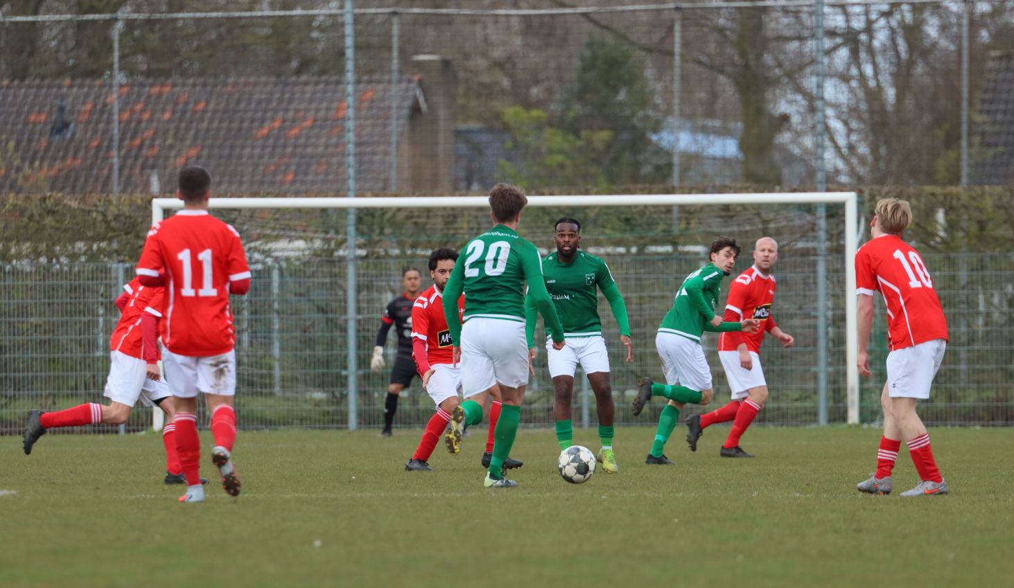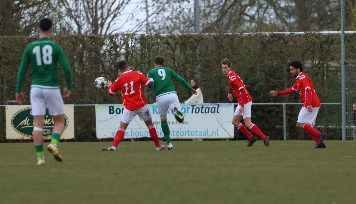 Met nog ruim twintig minuten op de klok moesten onze groen-witten risico gaan nemen. Ze schakelden over op één op één verdedigen en Arno Scheele schoof op naar voren. Zijn voorzet leverde een kleine twintig minuten voor het verstrijken van de officiële speeltijd bijna de gelijkmaker op. Lars de Jonge dook op bij de tweede paal, maar kopte in kansrijke positie ruim naast het doel van Dillian Vink.