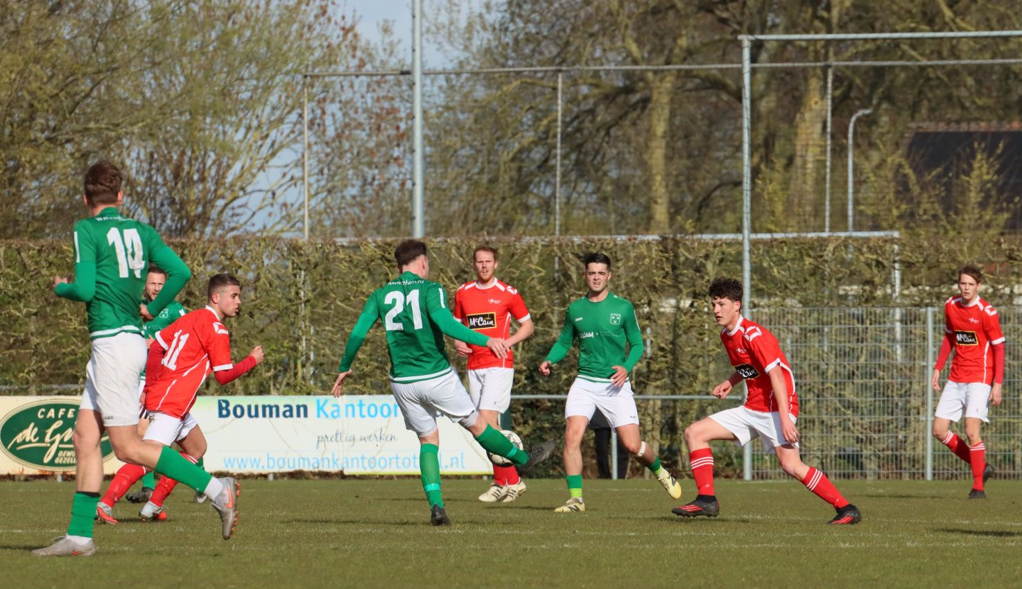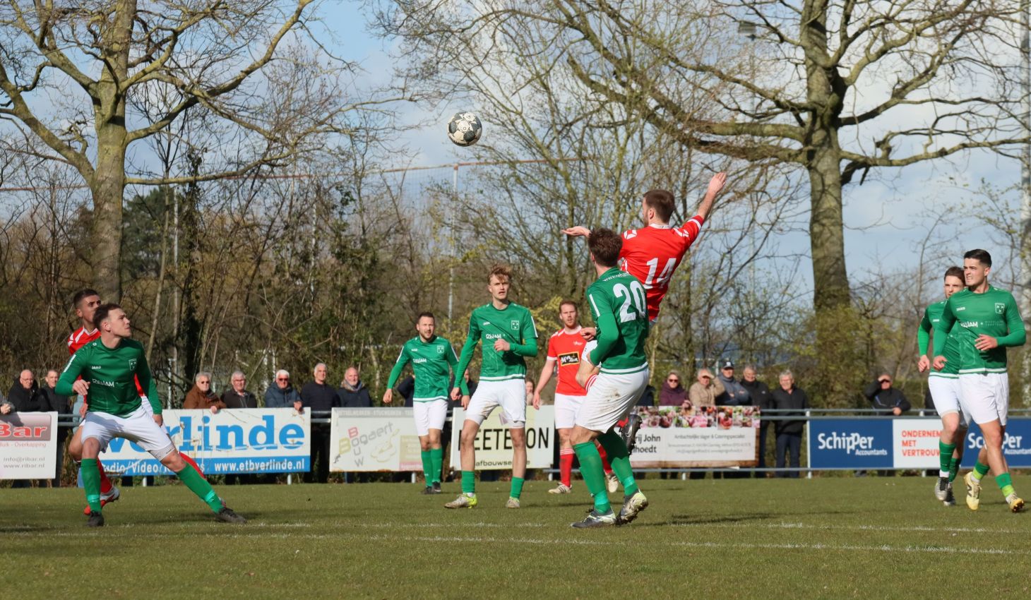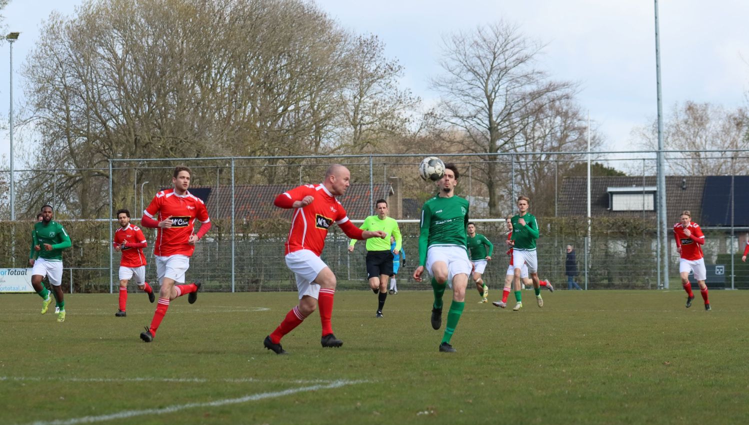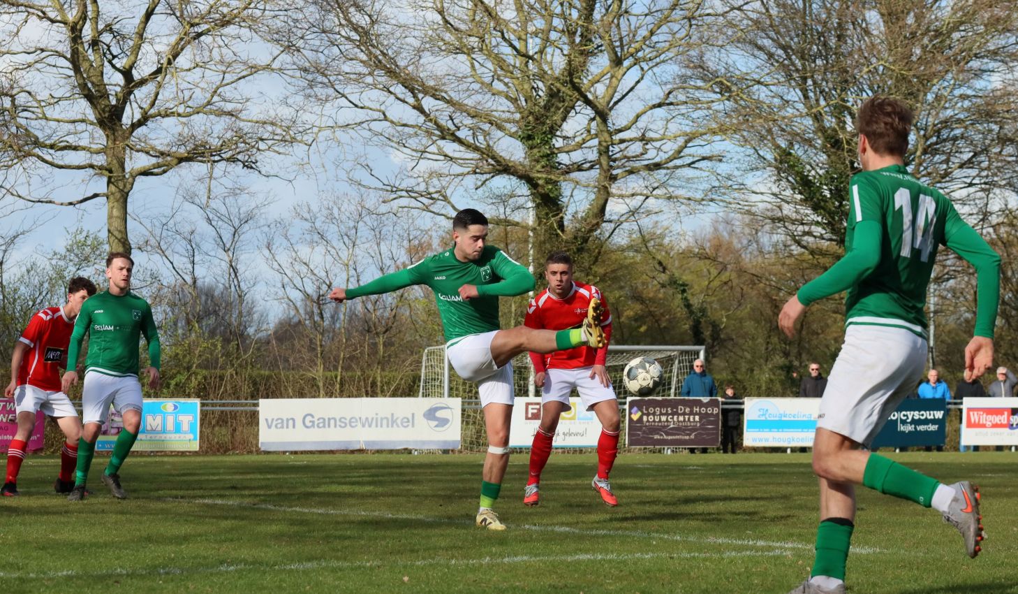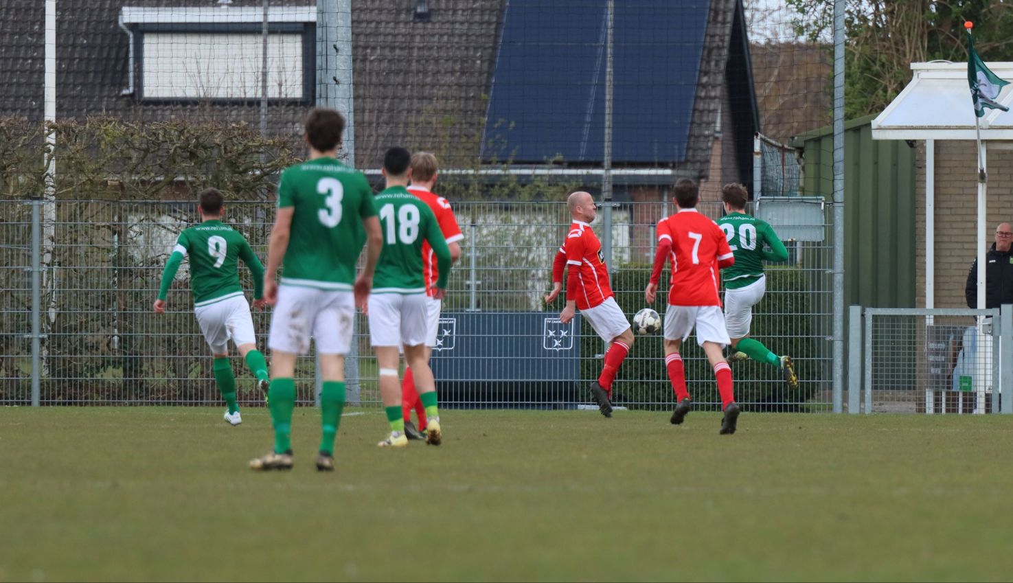 Met nog ruim twintig minuten op de klok moesten onze groen-witten risico gaan nemen. Ze schakelden over op één op één verdedigen en Arno Scheele schoof op naar voren. Zijn voorzet leverde een kleine twintig minuten voor het verstrijken van de officiële speeltijd bijna de gelijkmaker op. Lars de Jonge dook op bij de tweede paal, maar kopte in kansrijke positie ruim naast het doel van Dillian Vink.
