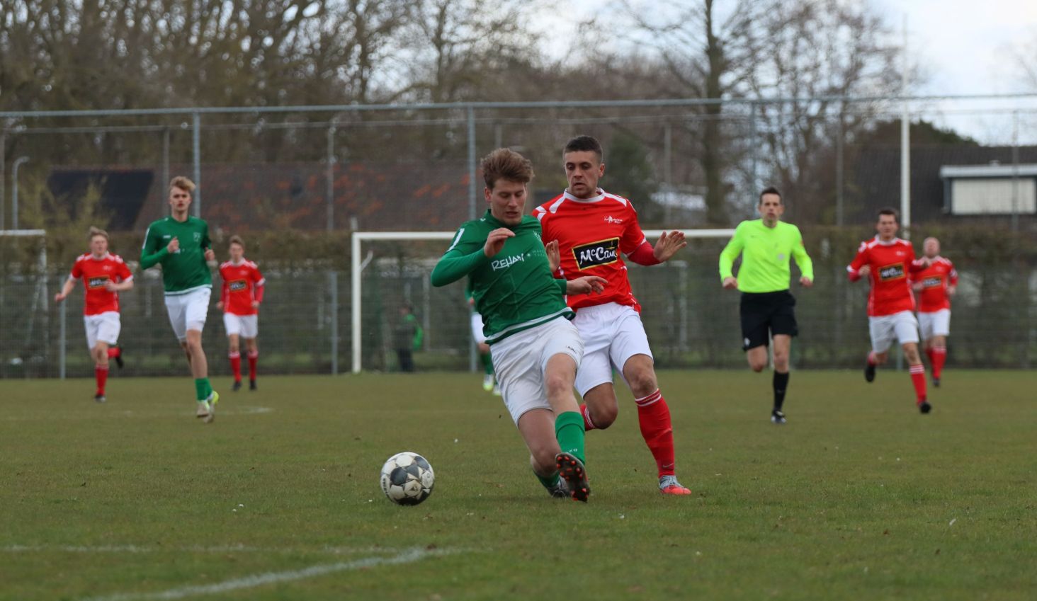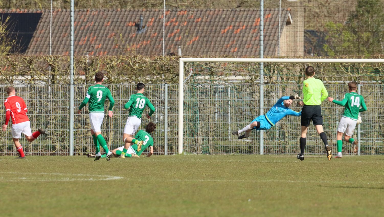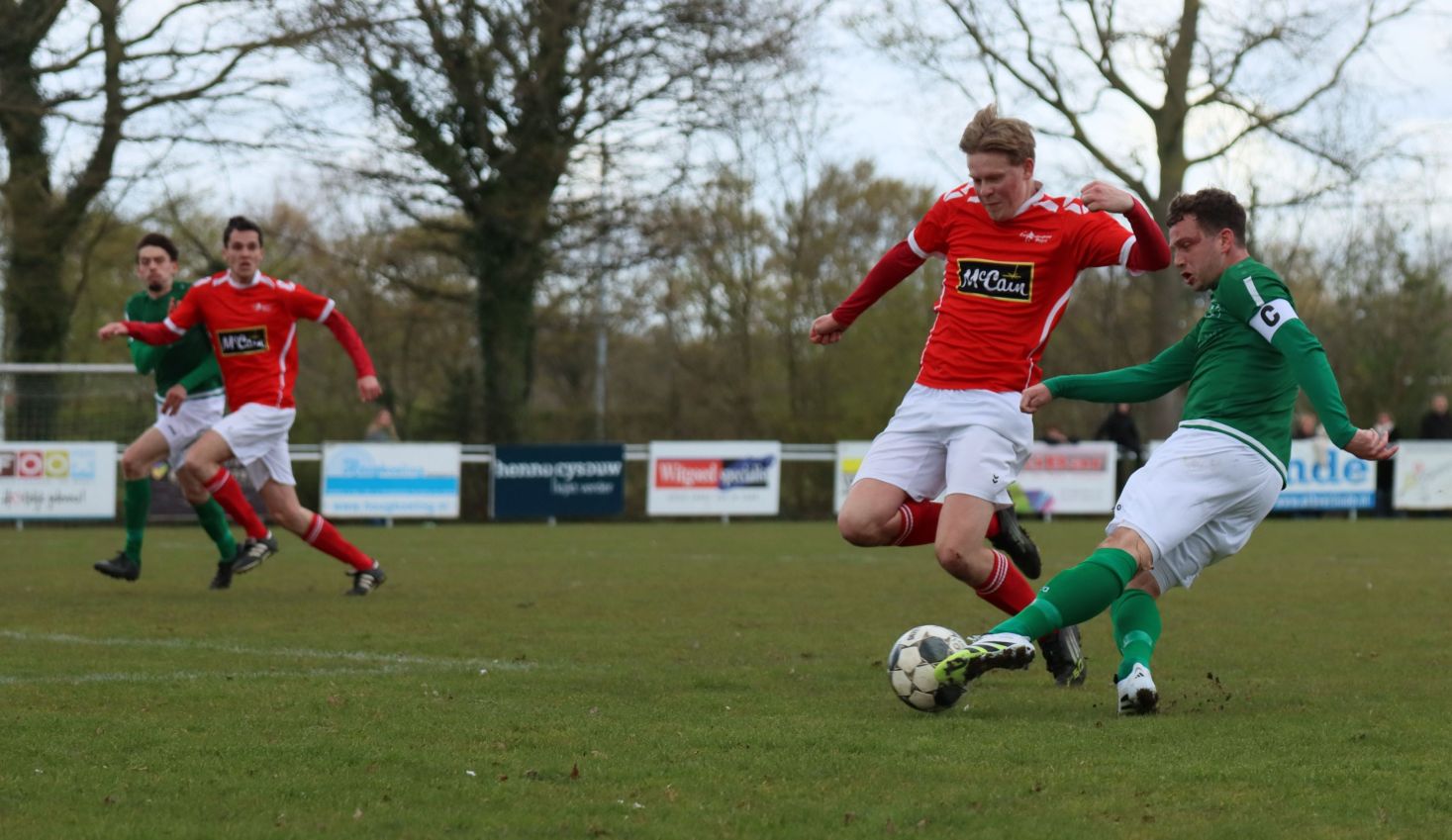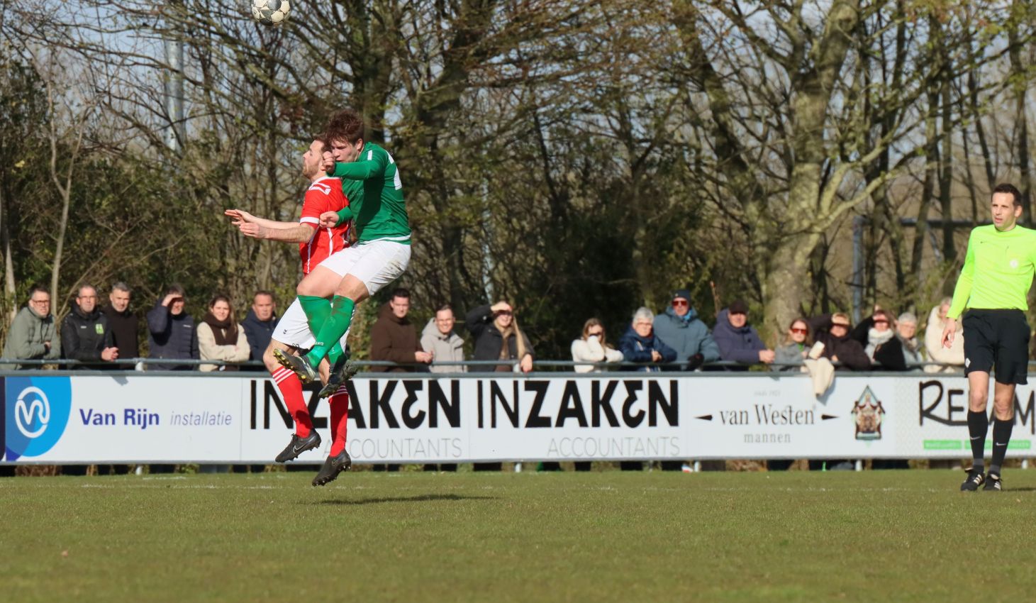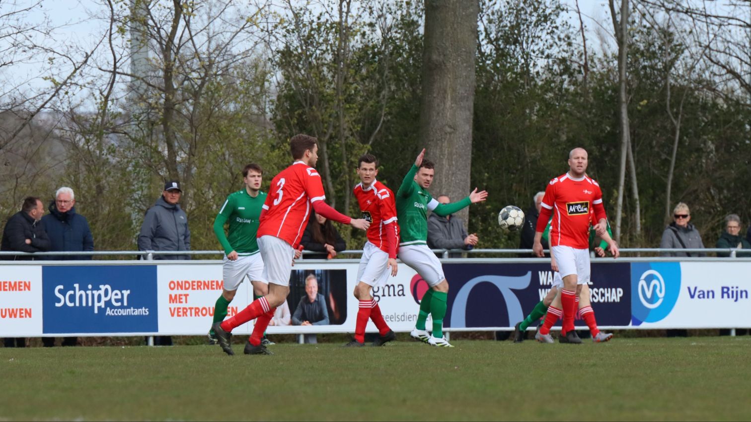 Met nog ruim twintig minuten op de klok moesten onze groen-witten risico gaan nemen. Ze schakelden over op één op één verdedigen en Arno Scheele schoof op naar voren. Zijn voorzet leverde een kleine twintig minuten voor het verstrijken van de officiële speeltijd bijna de gelijkmaker op. Lars de Jonge dook op bij de tweede paal, maar kopte in kansrijke positie ruim naast het doel van Dillian Vink.