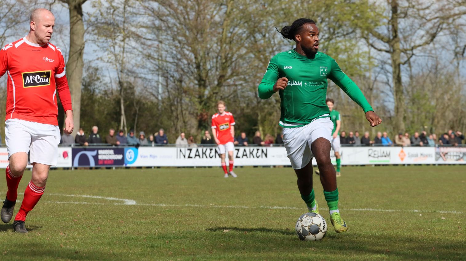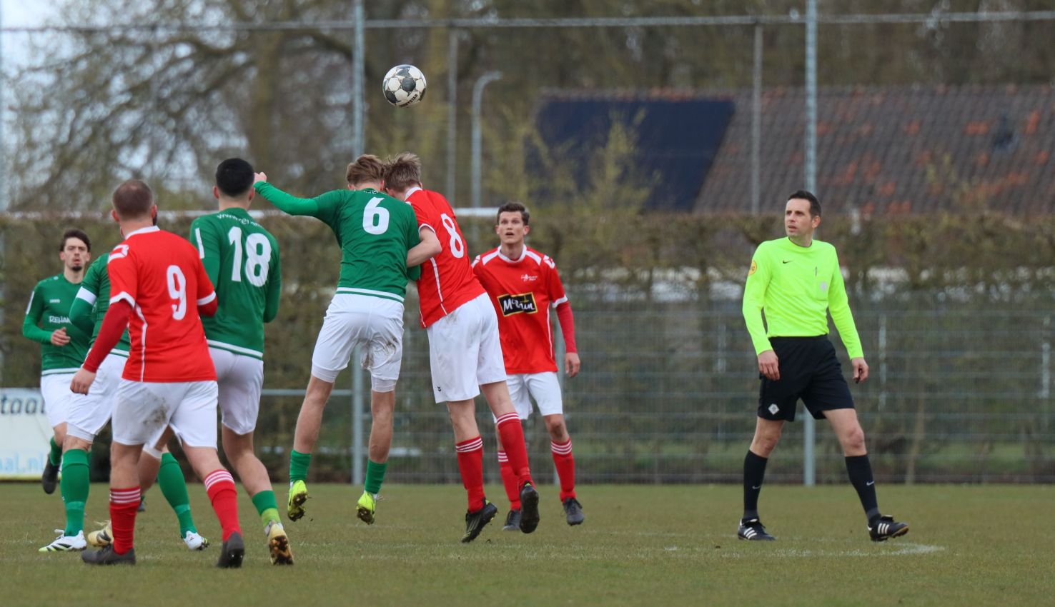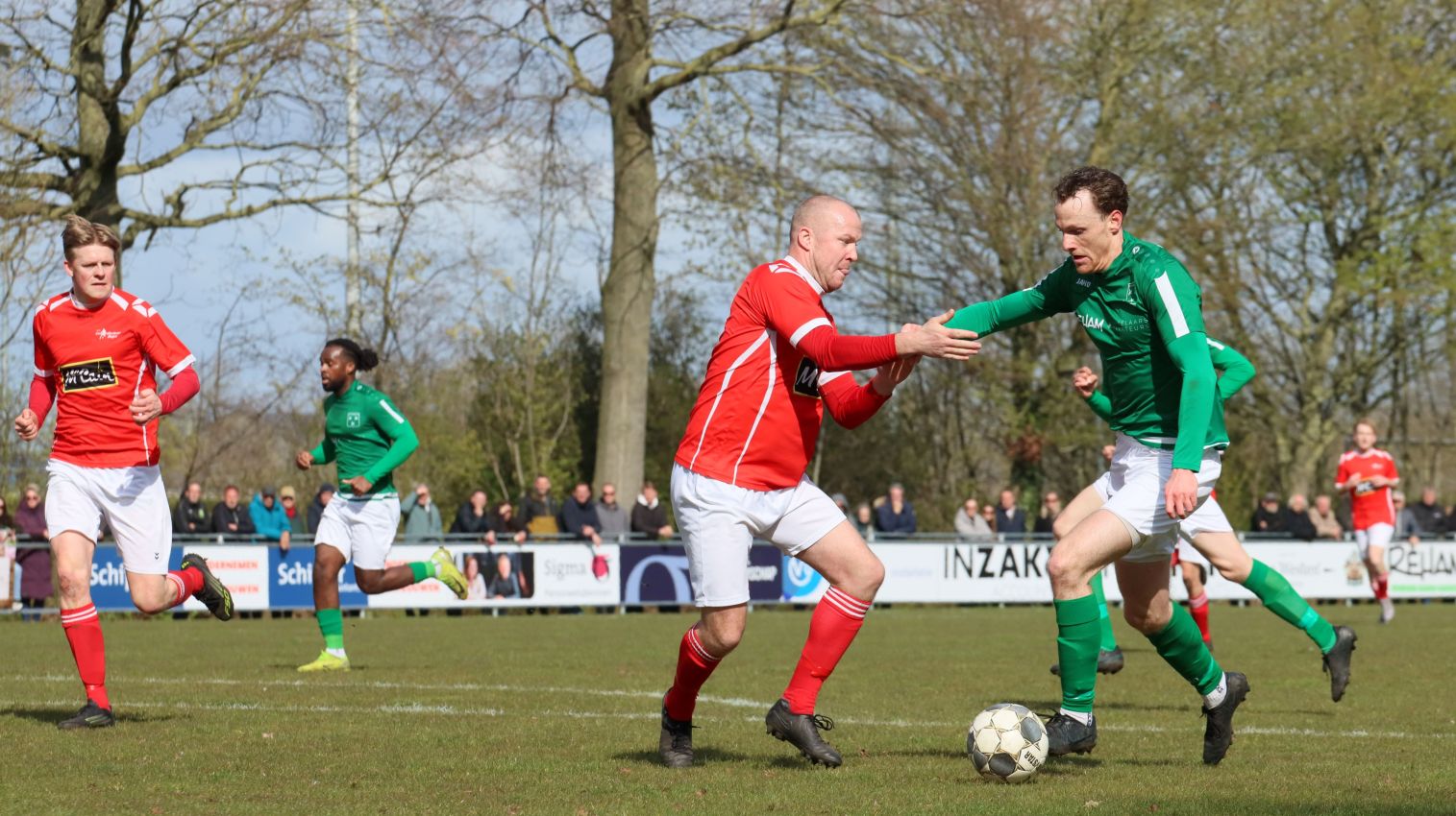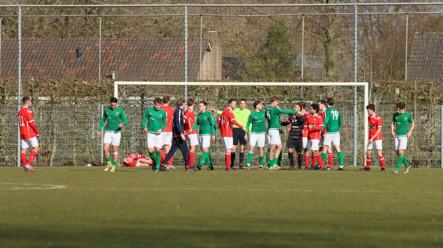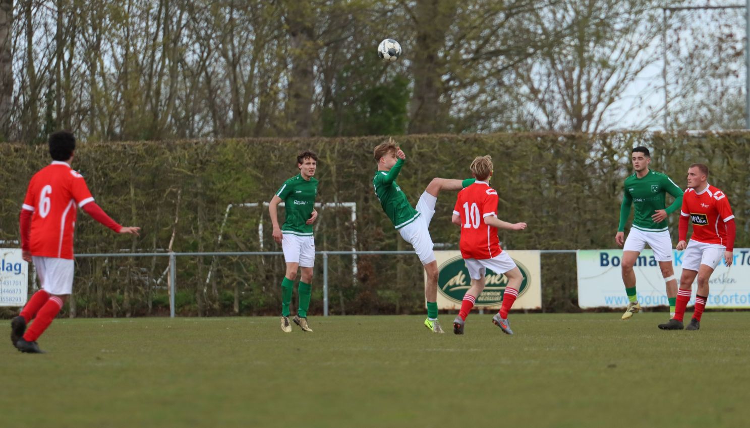 Met nog ruim twintig minuten op de klok moesten onze groen-witten risico gaan nemen. Ze schakelden over op één op één verdedigen en Arno Scheele schoof op naar voren. Zijn voorzet leverde een kleine twintig minuten voor het verstrijken van de officiële speeltijd bijna de gelijkmaker op. Lars de Jonge dook op bij de tweede paal, maar kopte in kansrijke positie ruim naast het doel van Dillian Vink.