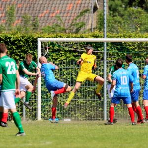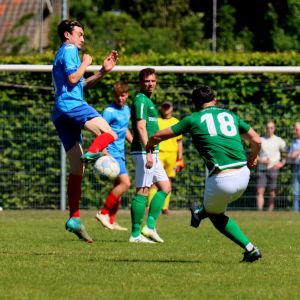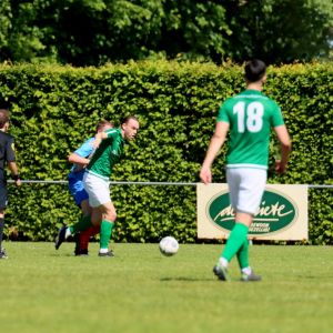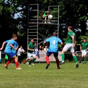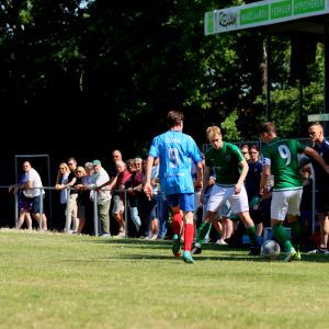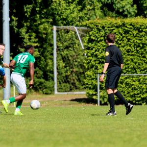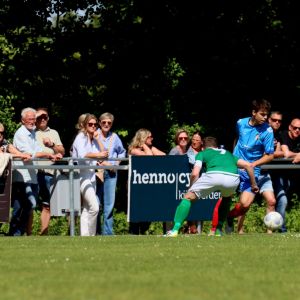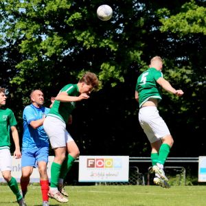 Na rust veranderde er weinig aan het spelbeeld, al was het minder sprankelend van de kant van onze groen-witten. De dominantie en de controle over de wedstrijd was aanwezig, zoals dat in het eerste bedrijf ook het geval was, maar het spel was net iets minder verzorgd en de scherpte voor het doel ontbrak er aan, waardoor meerdere grote kansen verloren gingen. Ook de bezoekers konden geen vuist maken, ondanks dat de ploeg de punten hard kon gebruiken in de strijd voor lijfsbehoud. De 2-0 voorsprong kwam na rust dan ook geen enkel moment in gevaar. De score had alleen veel hoger kunnen uitpakken als de kansen benut waren geweest. Ondanks zijn twee doelpunten baalde Wout Hamelink na afloop over zijn gemiste kansen in de 2e helft. Het is hem vergeven, want de clubtopscoorder verzette bergen werk. Niet alleen aanvallend, maar ook verdedigend stond hij zijn mannetje. De grootste mogelijkheden kreeg hij in de slotfase van de wedstrijd. Eerst was er een slim genomen vrije trap van Koen Post, die Arno Scheele op rechts aanspeelde, waarna een scherpe voorzet kort voor het doel werd gemist door de vleugelaanvaller. Een derde treffer zou meer dan verdiend zijn geweest, maar het lukte niet. Ook niet in de laatste minuut van de officiële speeltijd toen Wout Hamelink diep werd gestuurd. Oog in oog met doelman Joost van Zoelen had hij net teveel tijd nodig om de bal onder controle te krijgen waardoor hij naast besloot. Het maakte verder weinig uit. Het belangrijkste was dat de drie punten in de tas zaten en dat het met goed voetbal was bereikt. “Jammer dat we geen 3e en 4e goal maakten, maar over het spel in de 1e helft ben ik zeer tevreden, dat was heel goed”, reageerde een opgetogen trainer Fabian Wilson na afloop van de wedstrijd. Na het bekend worden van de overige uitslagen werd duidelijk dat een nacompetitieticket in de wacht is gesleept en dus wacht als beloning op een goed seizoen het toetje dat promotiewedstrijden heet. De daaropvolgende 3e helft was dan ook een hele gezellige, zeker met het prachtige weer.