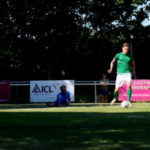 Met het goede spel tegen DwO’15 revancheerde de ploeg zich voor de blamage eerder dit seizoen (2-1 nederlaag). Destijds hadden onze groen-witten een complete off-day op de hobbelige wei in Driewegen. Voor het thuisduel tegen de ploeg uit Driewegen ontbraken nog steeds een aantal geblesseerde spelers (Quinten Mel, Roy van der Staal en Teun van Fraeyenhove) en aan dat lijstje werd deze week Yannick van der Hooft toegevoegd. Tijdens de wedstrijd tegen Spui moest hij geblesseerd het veld verlaten en dat bleek veel erger dan aanvankelijk gedacht. Nader onderzoek zal uit moeten wijzen wat het is. Verder bestond de wedstrijdselectie uit de vertrouwde namen, aangevuld met reserve doelman Timme Vinke en 2e elftalspeler Robbie Meeusen. Meteen vanaf het eerste fluitsignaal van de nog jonge scheidsrechter Leon de Jonge uit Middelburg, bezig aan zijn eerste seizoen in het seniorenvoetbal, werden de bedoelingen van onze groen-witten duidelijk. Met een hoog tempo liet de ploeg van Fabian Wilson de bal rond gaan en werden de bezoekers uit Driewegen ver op eigen helft teruggedrongen. Het resulteerde al in de 3e minuut in een eerste mogelijkheid. Cees van Tiel mocht buiten de zestien aanleggen voor een vrije trap na een overtreding op Koen Post. De armen gingen al de lucht in, maar dat was iets te voorbarig. Doelman Joost van Zoelen ranselde de uitstekend genomen vrije trap uit zijn doel. De aanvallen volgden elkaar in rap tempo op, waardoor de gasten alle zeilen moest bijzetten om de rijen gesloten te houden. Dat bleek al vroeg in de wedstrijd onbegonnen werk, want in de 7e minuut was daar de voorsprong. Op aangeven van Michael Christina sneed Wout Hamelink vanaf links naar binnen en haalde met rechts uit. Doelman Joost van Zoelen moest het antwoord schuldig blijven op het harde en geplaatste schot, 1-0. En onze groen-witten gingen door. Nog binnen het kwartier kreeg Michael Christina een grote kans om de voorsprong te verdubbelen, maar hij kopte rakelings naast. DwO’15 voorkwam verdere schade, maar dat ging meer dan eens met het nodige kunst en vliegwerk. Zelden lukte het de ploeg om de eigen helft te verlaten, laat staan dat ze in de buurt van het doel van Bryan Buren verschenen.