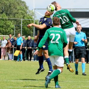 Kort na deze 1-5 maakte scheidsrechter Niels Boel een einde aan de wedstrijd. Door twee uitstekend gespeelde wedstrijden op rij hebben onze groen-witten de finale van de nacompetitie bereikt en lonkt promotie naar de 2e klasse. Het zou een fantastische prestatie zijn, maar dan moet er volgende week eerst nog wel worden afgerekend met Walcheren, dat verrassend met 0-1 ging winnen bij Luctor Heinkenszand. Dat onze groen-witten dit seizoen in de reguliere competitie tot twee keer toe als sterkste uit de bus kwamen (thuis 1-0 en uit 3-5) tegen Walcheren speelt nu geen enkele rol van betekenis, want de finale is een wedstrijd op zich.