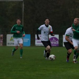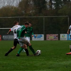 In de 2e helft viel al vroeg de beslissing. Onze groen-witten waren heer en meester in de tweede 45 minuten en dat resulteerde al na vijf minuten in de 1-3. Een rush van Wout Hamelink op de linkerflank eindigde met een doeltreffende diagonale schuiver, alweer zijn zesde doelpunt van het seizoen. Nu werd het wel heel lastig voor de thuisploeg om nog terug te keren in de wedstrijd. Onze groen-witten controleerden de wedstrijd en gaven nauwelijks kansen weg. Net als vorige week werd doelman Quinten Mel niet of nauwelijks getest, des temeer een teken dat het defensief weer als een huis stond. Toch was er na tien minuten even een angstig moment toen Yannick van der Hooft in een luchtduel wel of geen duw in de rug uitdeelde aan zijn tegenstander. Op de bank van Philippine werd moord en brand geschreeuwd. “Zaamslag een strafschop, dan wij ook een strafschop”, was de reactie van Philippine. Scheidsrechter Northolt wuifde het commentaar weg door te verklaren dat het schouder tegen schouder was en daar leek het inderdaad veel van weg te hebben getuige de foto’s waarop te zien is dat de linksback zijn armen netjes langs zijn lichaam heeft. Het liep met een sisser af voor onze groen-witten, die in het resterende deel van de wedstrijd nauwelijks nog iets weggaven. Het was duidelijk te zien dat het vertrouwen er weer was bij de ploeg van Fabian Wilson. Een aantal uitstekende aanvallen werden op de mat gelegd, maar er werd net te weinig geprofiteerd van de door Philippine geboden ruimte. Op het uur werd Michael Christina, die een prima 2e helft speelde, diep gestuurd en besloot van afstand uit te halen. Het leer zeilde richting de kruising, maar doelman Jules Delzenne wist er nog net de vingertoppen tegenaan te krijgen, waardoor slechts een hoekschop resteerde. Toch pikte de linkshalf een paar minuten later zijn doelpuntje mee. Na balverovering op het middenveld volgde in de omschakeling een razendsnelle counter over de linkerflank. Net als bij de 1-3 stuurde Wout Hamelink de bal richting verre hoek, maar vond nu wel de Philippine sluitpost op zijn weg. In de rebound viel de bal voor de voeten van Cees van Tiel, wiens inzet ook werd geblokt. De derde poging was vervolgens wel raak. Michael Christina was er als de kippen bij om van dichtbij de wedstrijd in het slot te gooien. Philippine gooide vervolgens het touwtje in de boot, want vanaf dat moment was het geloof in een goede afloop helemaal verdwenen bij de ploeg van Huib Meerman en zijn assistent Randy van Overmeeren. Met hoge ballen voor de pot probeerde de thuisploeg in de slotfase nog iets te forceren, maar met het kopsterke centrale duo Lars de Jonge en Fabrice van Holsbeke, gesteund door de backs Yannick van der Hooft en Jeffrey van de Velde hielden onze groen-witten moeiteloos stand. Aan de andere kant ontstond als gevolg van een aandringend Philippine de nodige ruimte, maar daar werd niet meer van geprofiteerd. De wedstrijd werd vervolgens zakelijk uitgespeeld door onze groen-witten. De stevige, maar sportieve derby eindigde al met al in een verdiende overwinning voor onze groen-witten. Na een mindere 1e helft kon de ploeg terugkijken op een uitstekende 2e helft. Iedereen heeft zijn stinkende best gedaan, niemand viel uit de toon en zodoende was het weer een prestatie van het collectief. Scheidsrechter Northolt had het kort gehouden, enerzijds vanwege het natte veld en anderzijds vanwege het feit dat beiden twee weken geleden ook al tegenover elkaar hadden gestaan en hij veel strijd verwachtte. Die strijd was er, maar toch hield hij het bij slechts twee gele kaarten, eerlijk verdeeld over beide teams. De bestraffing van Lars de Jonge in de slotfase na een zuivere tackle op de bal was overigens in de ogen van vriend en vijand onterecht, maar desondanks floot de arbiter een prima partij.