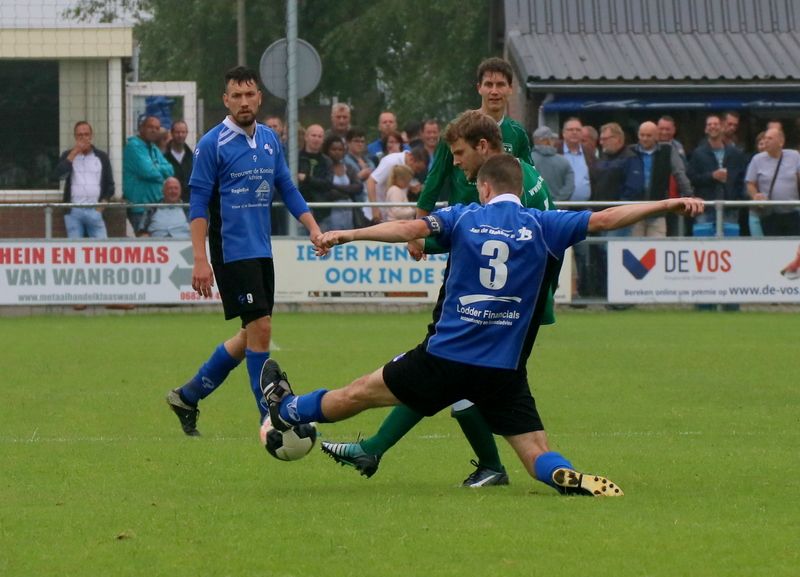 Dat was na rust wel anders, zeker wat onze groen-witten betrof. Vanaf de aftrap waren zij de bovenliggende partij en gingen nadrukkelijk op zoek naar een doelpunt, dat er al vrij snel kwam. Een pass vanuit de verdediging van de voet van Ruben de Haas viel over de verdediging van Den Bommel precies goed voor de op snelheid zijnde Wesley Dieleman. Hij schudde verdediger Leon Breeman af en schoof in een één op één situatie de bal langs doelman Jordy Hanenberg in het doel. Deze 0-1 voorsprong werkte bevrijdend voor onze groen-witten. De thuisploeg moest risico gaan nemen, er moest gescoord worden om te voorkomen dat het doek al na één wedstrijd zou vallen. Even ontstond op het uur een hachelijke situatie toen Den Bommel een hoekschop mocht nemen en onze groen-witten heel even met tien man stond na het geblesseerd wegvallen van Roy van der Staal. Doelman Dominique Pijpelink hield echter zijn doel schoon en Roy van der Staal kon even later weer aansluiten.