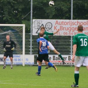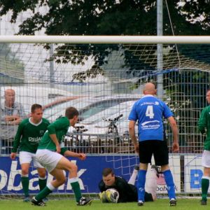 Vooral bij de thuisploeg stond de druk er dus behoorlijk op en dat was met name in de 1e helft duidelijk merkbaar. Maar ook onze groen-witten begonnen nerveus aan dit duel. Bij beide ploegen ging er heel veel fout in de passing waardoor de bal niet in de ploeg kon worden gehouden. Van opwindende momenten voor de doelen was dan ook niet één keer sprake. De enige echte kans voor Den Bommel voor rust was er al na vijf minuten toen rechtsback Maikel Krans zijn tegenstander niet kort genoeg dekte. De behendige Ruben dos Santos Fortes leek er dankbaar gebruik van te maken en stevende op doelman Dominique Pijpelink af, die de linksbuiten naar buiten dwong. Dat bleek voldoende, want hij schoot te gehaast en zag zijn inzet naast het doel verdwijnen.