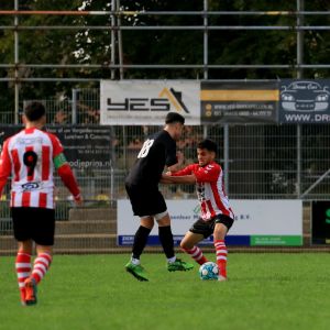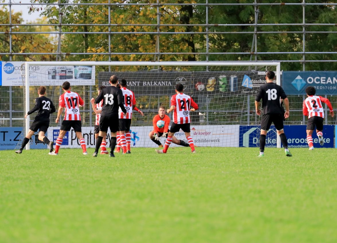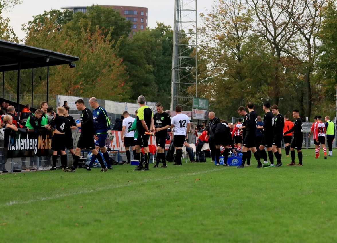 Ondanks een moeilijk laatste kwartier, waarin de thuisploeg flink aandrong en kansen kreeg op de openingstreffer, was het gelijke spel niet geheel onverdiend te noemen. Onze groen-witten werden daarbij in het zadel geholpen door de thuisploeg, die zichzelf in de vingers sneed door tegen een vroege rode kaart aan te lopen en 85 minuten met 10 man verder moest. Ondanks het numerieke overwicht van onze groen-witten bleef de thuisploeg toch de beter voetballende ploeg, maar wist voor rust nauwelijks een kans te creëren. Onze groen-witten waren zelfs het dichtst bij de openingstreffer, maar de paal stond een doelpunt in de weg. De 2e helft liet aanvankelijk een zelfde spelbeeld zien, totdat centrale verdediger Roy van der Staal ongelukkig tegen een 2e gele kaart aanliep. Met tien tegen tien werd de druk door de thuisploeg opgevoerd en was het met name in het laatste kwartier billen knijpen, maar met vereende krachten en goed keeperswerk van Guide Vinke werd een kostbaar punt overgehouden aan dit vervelende duel dat vooral werd gekenmerkt door theatraal gedrag en veel misbaar.