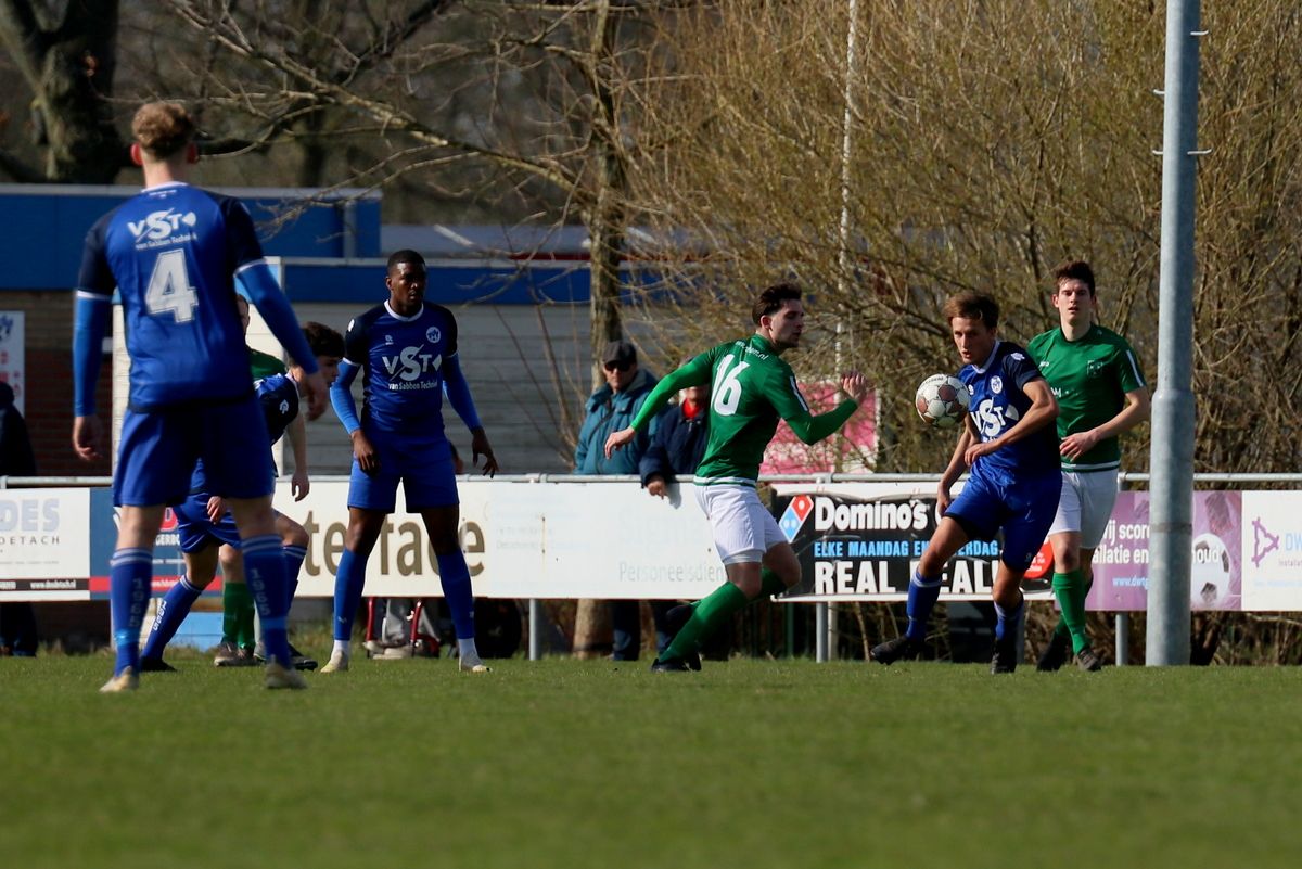 De achterstand op SSV’65, die op de veilige 9e plaats terug te vinden zijn, bedroeg voor aanvang van dit duel 7 punten, dus om nog een kleine kans te houden om die plek van SSV’65 over te nemen moest er gewonnen worden in Goes. Onze groen-witten speelden echter een nagenoeg kansloze wedstrijd en omdat SSV’65 dit seizoen ook moeilijk tot scoren komt, eindigde de wedstrijd in 0-0. En daarmee mochten onze groen-witten zich het meest gelukkig prijzen.
