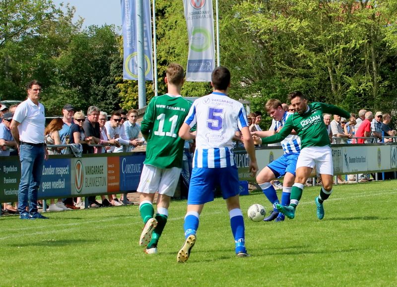 ’s Heer Arendskerke werd na rust overklast. De ploeg kon er maar weinig meer tegenover stellen. Onze groen-witten voelden dat terdege. Ze namen dus geen genoegen met een gelijkspel en gingen op zoek naar een voorsprong. Daar moesten ze niet al te lang op wachten. In de 66e minuut werd Peter Dieleman op rechts weggestuurd. Zijn afgemeten voorzet werd voor het doel knap met het hoofd afgerond door Niek Luime. Zo werd een schier onmogelijk overbrugbare 3-0 achterstand omgebogen in een 4-3 voorsprong.