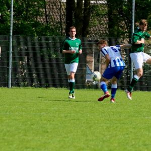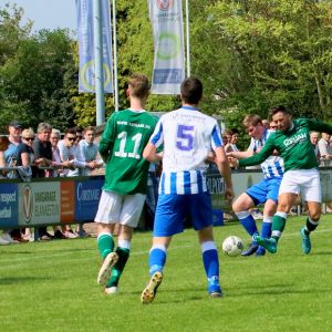 Aanvankelijk leverde de aanvalsdrang van onze groen-witten enkel een serie hoekschoppen op, die allemaal niets opleverden, maar na ruim een uur wedstrijd viel de verdiende gelijkmaker toch. Twee verdedigers van de thuisploeg tastten mis op een diepe bal waardoor Peter Dieleman in balbezit kwam. Hij bewaarde de rust en had goed oog in de opkomende Koen Post, die verwoestend uithaalde. Doelman Dooge kon enkel toekijken hoe de bal hoog tegen de touwen sloeg, 3-3.