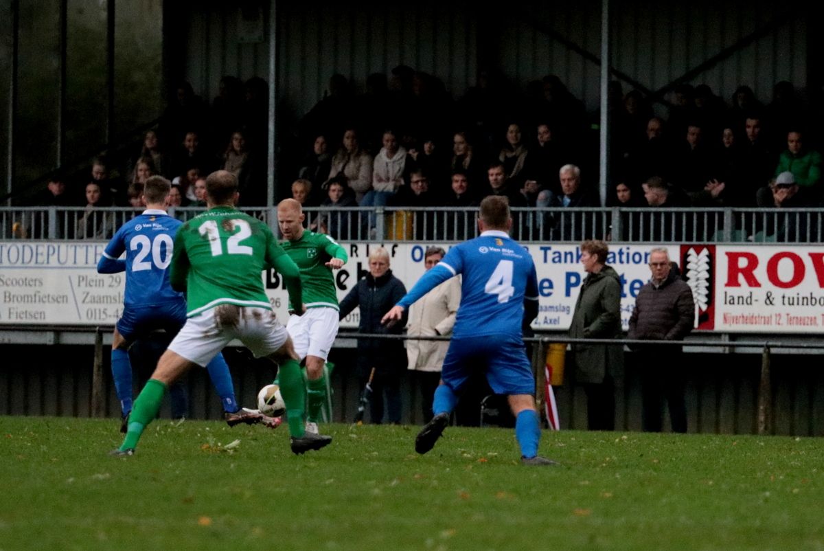 Ondanks de vele regen van de afgelopen dagen lag het hoofdveld aan de Sportlaan er prima bij, nadat het vrijdag was ontdaan van de vele bladeren en takken na de storm van afgelopen donderdag. Wat dat betreft stond niets een mooie derby in de weg, ook al was de weersvoorspelling voor en tijdens de wedstrijd niet al te best. Met uitzondering van een aantal bekerwedstrijden in de afgelopen jaren stond er eindelijk weer eens een derby op het programma. De laatste werd gespeeld in het seizoen 2016-2017 en ook toen was FC Axel in de 2e klasse de tegenstander en moesten onze groen-witten in beide wedstrijden de punten aan de Axelaars laten (thuis 0-1 en uit 2-1).