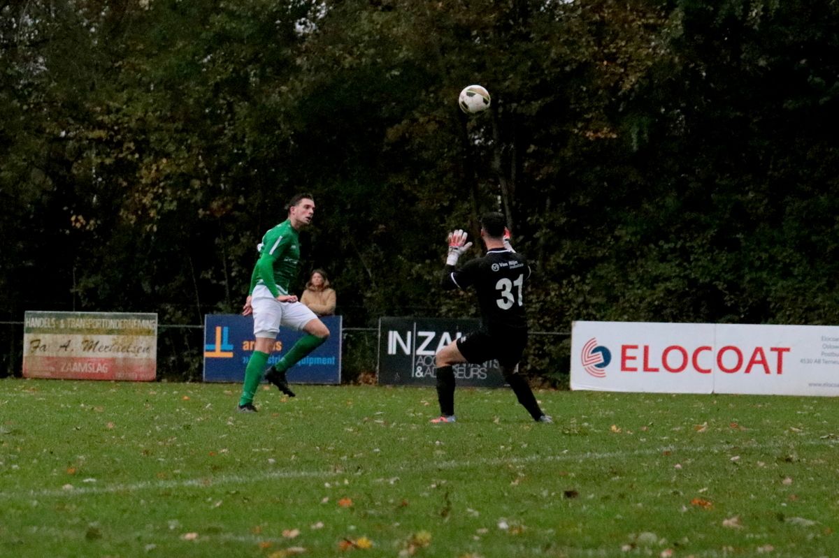 FC Axel, met oud Zaamslag spelers Juriën Dam en Maikel Krans in de gelederen, begon sterk aan de derby en drong onze groen-witten in de eerste vijf minuten terug op eigen helft. Middels een afstandschot, dat een prooi was voor doelman Bryan Buren, kreeg het een eerste mogelijkheid. Daarna kwam de wedstrijd meer in balans en ging het spel heen en weer. Onze groen-witten wisten daarbij een paar keer dreigend in de buurt van doelman Bart Monsieurs te verschijnen. Eerst was het Lando Jorge die de doelman dwong buiten zijn strafschopgebied in te grijpen en even later kreeg Sam Cornelissen de mogelijkheid om de bal over de uit zijn doel gekomen Monsieurs te lobben. Dat lukte, maar zijn inzet was aan de ruime kant en verdween ook hoog over het lege doel.