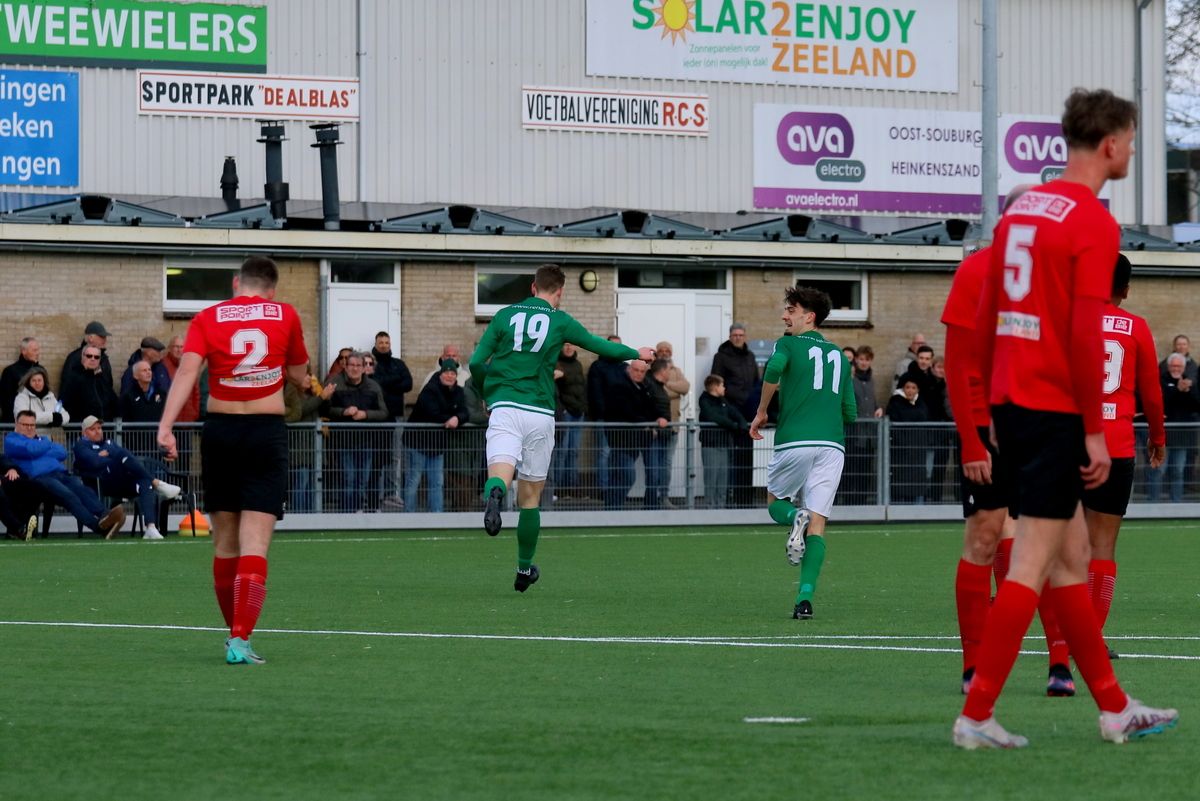 Qua spel konden onze groen-witten niet tippen aan RCS, maar qua kansen creëren moesten ze niet onderdoen voor de thuisploeg. Ze kregen in de gaten dat er mogelijk iets te halen viel in Oost-Souburg en dus gooiden ze alle schroom van zich af en namen vijf minuten na de 1-1 even brutaal als verrassend de leiding. Deze keer waren de rollen omgedraaid en was Brian van Hoorn de aangever en Wout Hamelink degene die zijn ploeg naar 1-2 schoot. Op de rand van de zestien ontdeed hij zich knap van aanvoerder Vjekoslav Krezo en haalde vernietigend uit. Andermaal moest doelman Raeven Buckley het antwoord schuldig blijven.