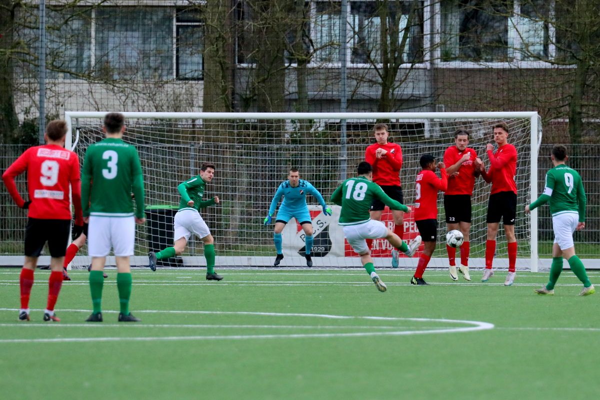 RCS moest in de achtervolging en deed dat met verve. Een minuut nadat onze groen-witten de leiding hadden genomen was Nicky van Merrienboer alweer gevaarlijk met een kopbal, maar Bryan Buren was op zijn post en redde op fraaie wijze. Het was dus oppassen en bij de les blijven, maar ondanks dat kon de voorsprong niet vastgehouden worden. Vijf minuten voor rust kwam de 2-2 wel heel ongelukkig tot stand, toen Kevin Segers een voorzet van Mervin Niemantsverdriet onbedoeld achter zijn eigen doelman werkte. Zo kwam de thuisploeg wel heel goedkoop aan de gelijkmaker, die ook meteen de ruststand opleverde.