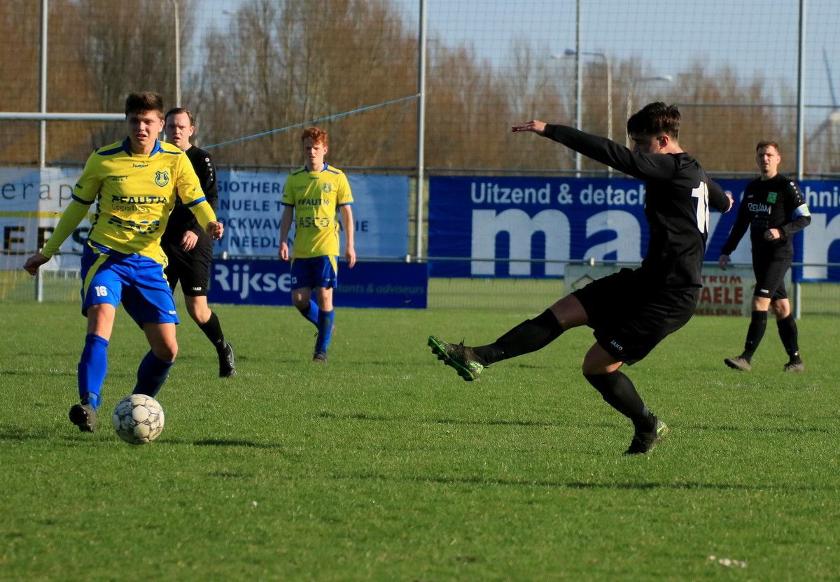 Dat was wel het geval na een uur spelen toen Zias Kosters, na mistasten van Koen Post, de vrije doorgang kreeg en de bal langs doelman Dominique Pijpelink schoof. Hij trof echter de paal om vervolgens in de rebound hoog over het lege doel te schieten. Nu zat het dus duidelijk wel even mee.
