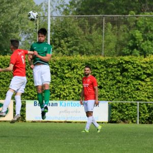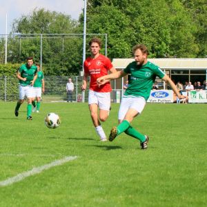 Halverwege het eerste bedrijf diende zich de volgende tegenslag aan. Joost Simons moest met liesklachten het veld verlaten en werd vervangen door de van een blessure terugkerende Brian van Hoorn. Kort na de wissel werden onze groen-witten sterker en sterker, kregen na een half uur volledig grip op de tegenstander en trokken uiteindelijk het initiatief in de wedstrijd naar zich toe. Dat resulteerde in de 37e minuut in de gelijkmaker. Nadat de bedrijvige Senna Bunt op het middenveld een aanval van de bezoekers had onderschept kwam de bal via Arno Scheele terecht bij Brian van Hoorn, die op zijn beurt Arno Scheele weer bediende. Tegen diens inzet was doelman Stephan Buijsse niet opgewassen waardoor de stand weer in evenwicht was.