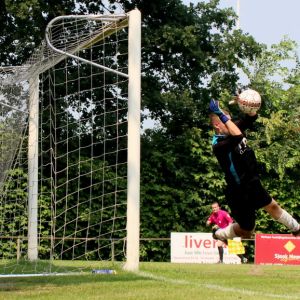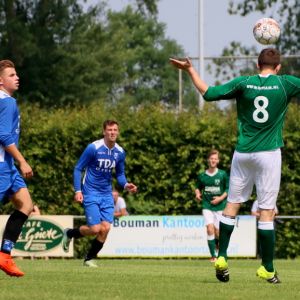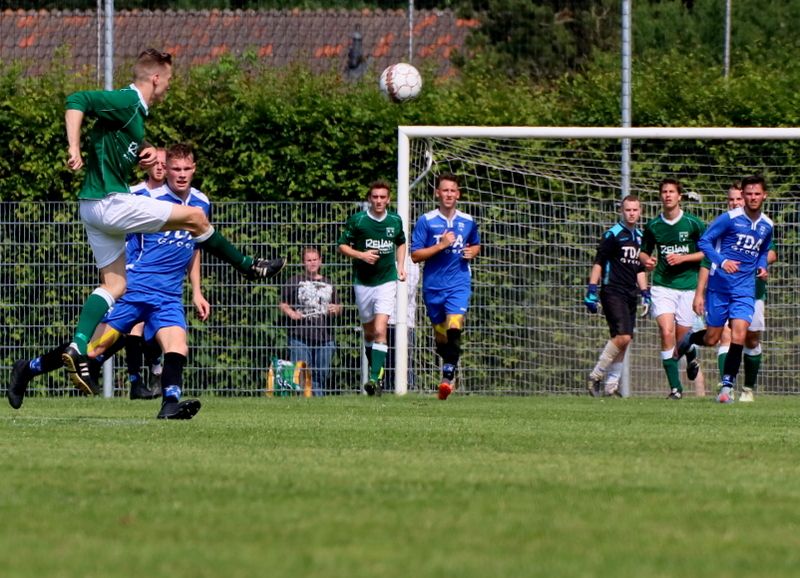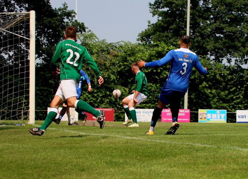 Halverwege de 1e helft kregen onze groen-witten een vrije trap na een overtreding op Niek Luime. Dennis van Passel eiste de bal op. Van een respectabele afstand stuurde Dennis de bal hard en zuiver naar de hoek, maar doelman Ruben van de Koppel wist met een knappe safe zijn doel schoon te houden.