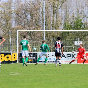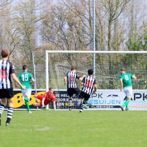 In de extra tijd leek Arno Scheele op aangeven van Wout Hamelink te gaan scoren. Deze keer was de Veere doelman geklopt, maar de middenvelder zag tot zijn ontzetting zijn inzet op de paal eindigen. Het was het laatste wapenfeit in dit sportieve duel, waarin de goed leidende Marin de Zwarte slechts één gele kaart hoefde te trekken. Zo boekten onze groen-witten een zeer verdiende en belangrijke overwinning op de rode lantaarndrager. Volgende week is de tegenstander van een heel ander kaliber, dan gaan onze groen-witten namelijk op bezoek bij koploper Serooskerke. Of er dan punten gehaald zullen worden valt te betwijfelen, maar je weet het op voorhand nooit bij voetbal.