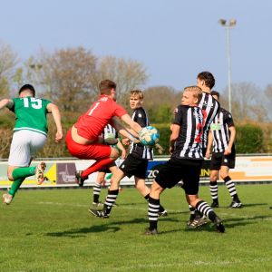 Na een prima 1e helft, waarin onze groen-witten domineerden en met drie doelpunten een ruime voorsprong hadden genomen op Veere, volgde een matig tweede bedrijf. Mogelijk was er als gevolg van de ruime voorsprong bij rust gemakzucht in de ploeg geslopen. Toch kwamen de drie punten geen moment in gevaar, waardoor de ploeg van trainer André Siereveld goede zaken deed en nog volop in de race is om uiteindelijk de 8e plaats op de ranglijst te bereiken. Deze 8e en veilige plaats is nu nog in handen van De Noormannen.
