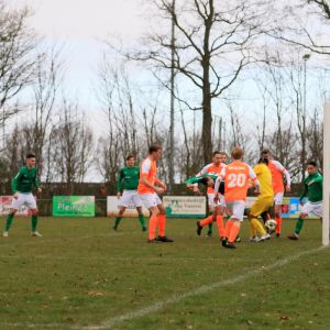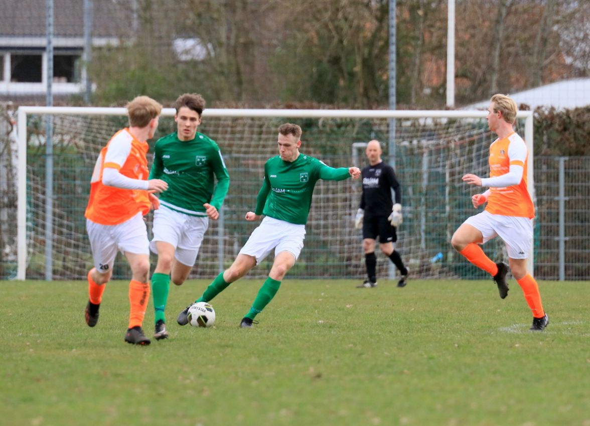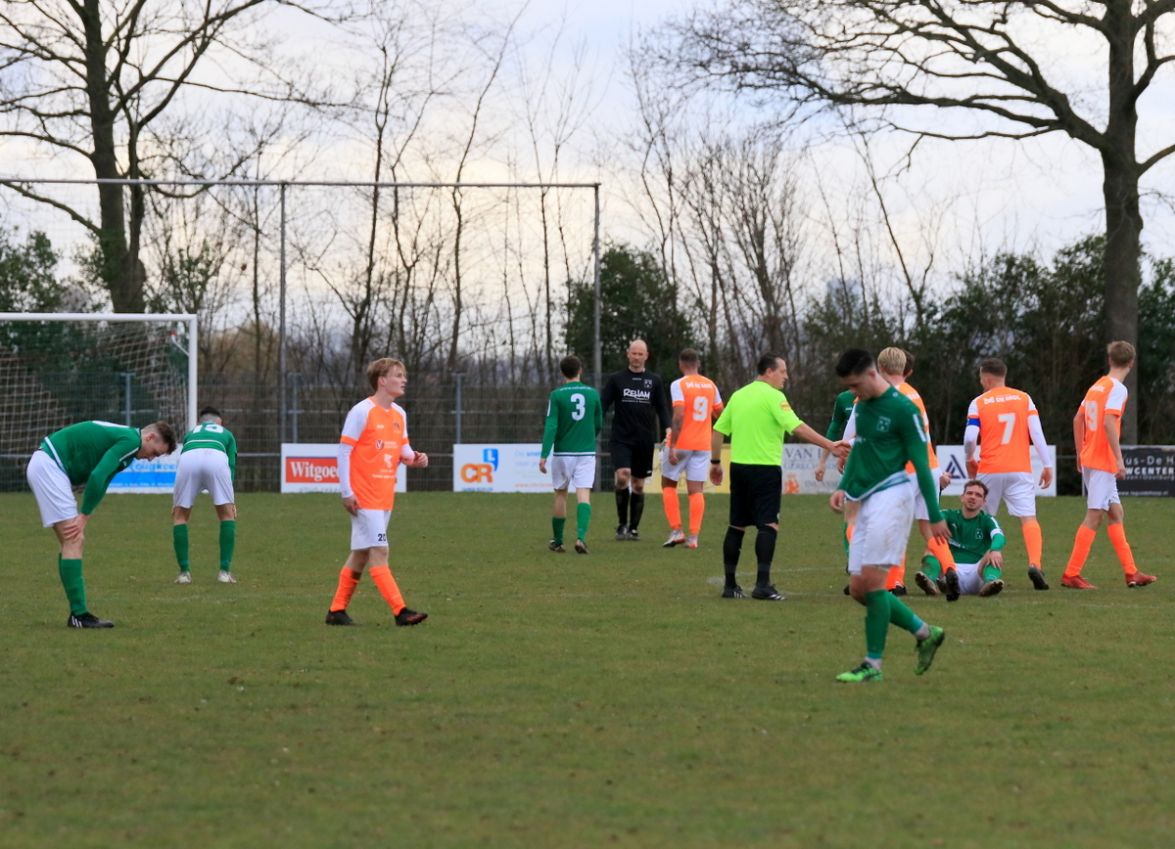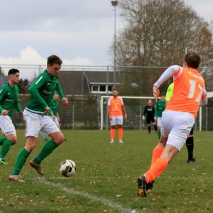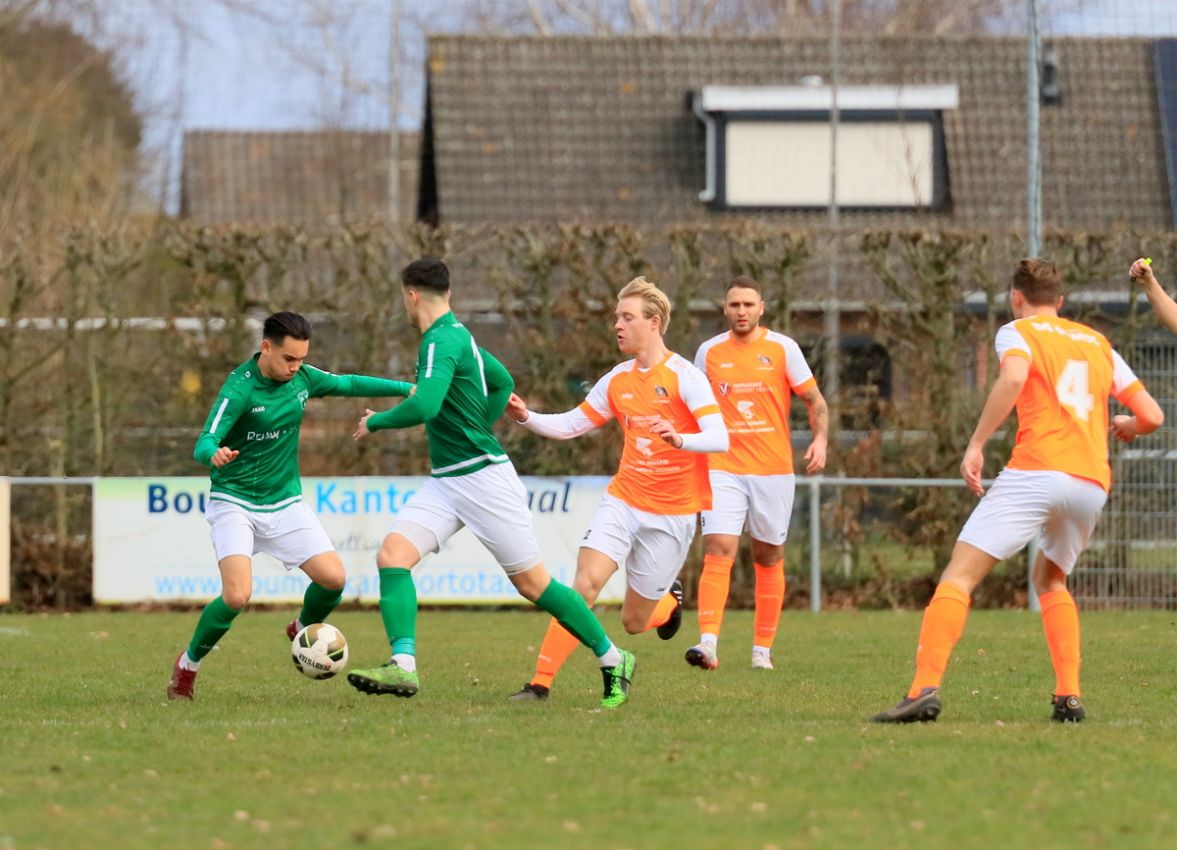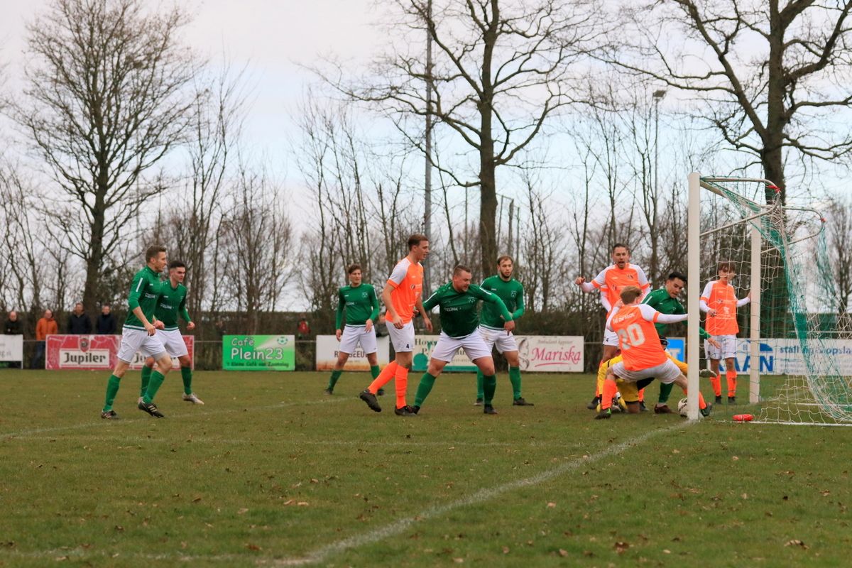 De wedstrijd begon desastreus voor onze groen-witten, die al na twee minuten tegen een achterstand aankeken. Nadat Roy van der Staal onder de bal was doorgegaan kon Rowan Traas de bal oppikken waarna hij besloot op doel te schieten. Doelman Guido Vinke tastte mis op de inzet van Traas. De zeldzame fout van de routinier zorgde voor een vroeg 1-0 achterstand. Onze groen-witten gingen niet bij de pakken neer zitten en trokken in het vervolg van de 1e helft tegen de nummer vier van de ranglijst de wedstrijd volledig naar zich toe. Met veel strijdlust en met vlagen goed voetbal werden de bezoekers terug gedrongen op eigen helft en er kwamen kansen, veel kansen, maar doelpunten bleven uit.