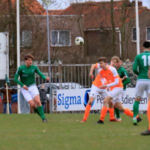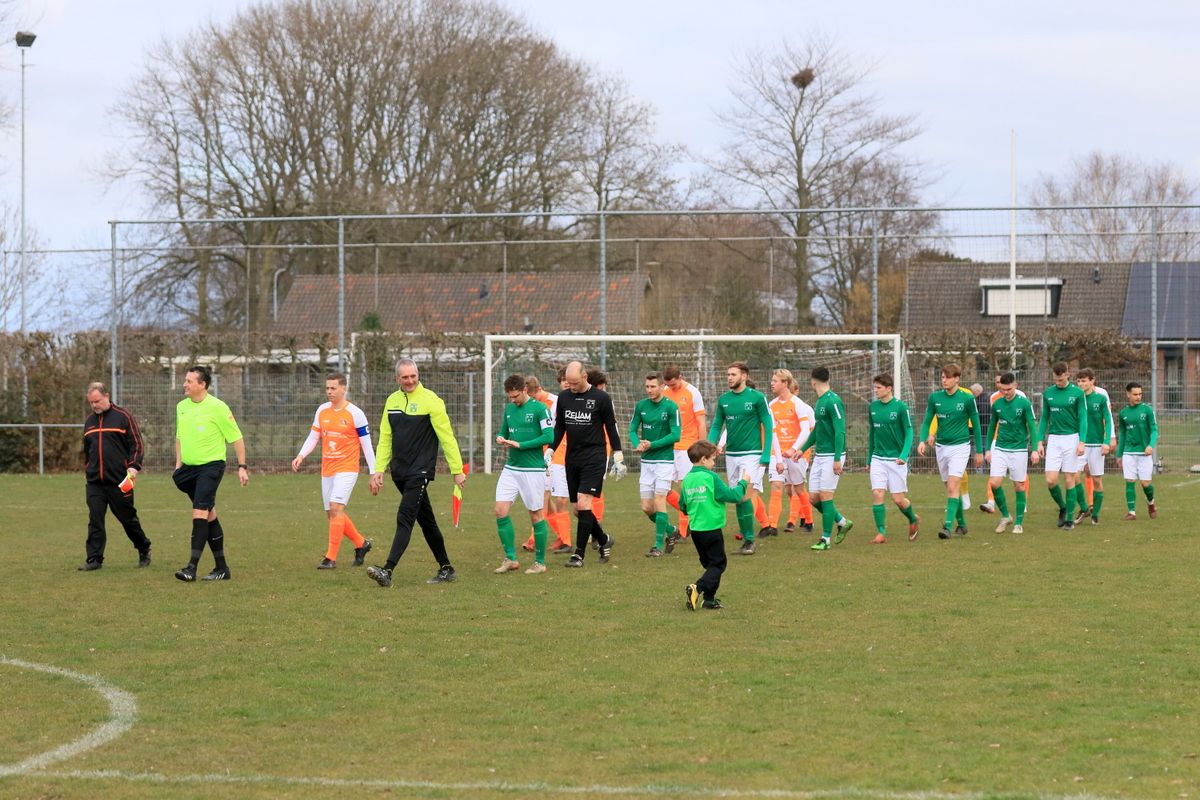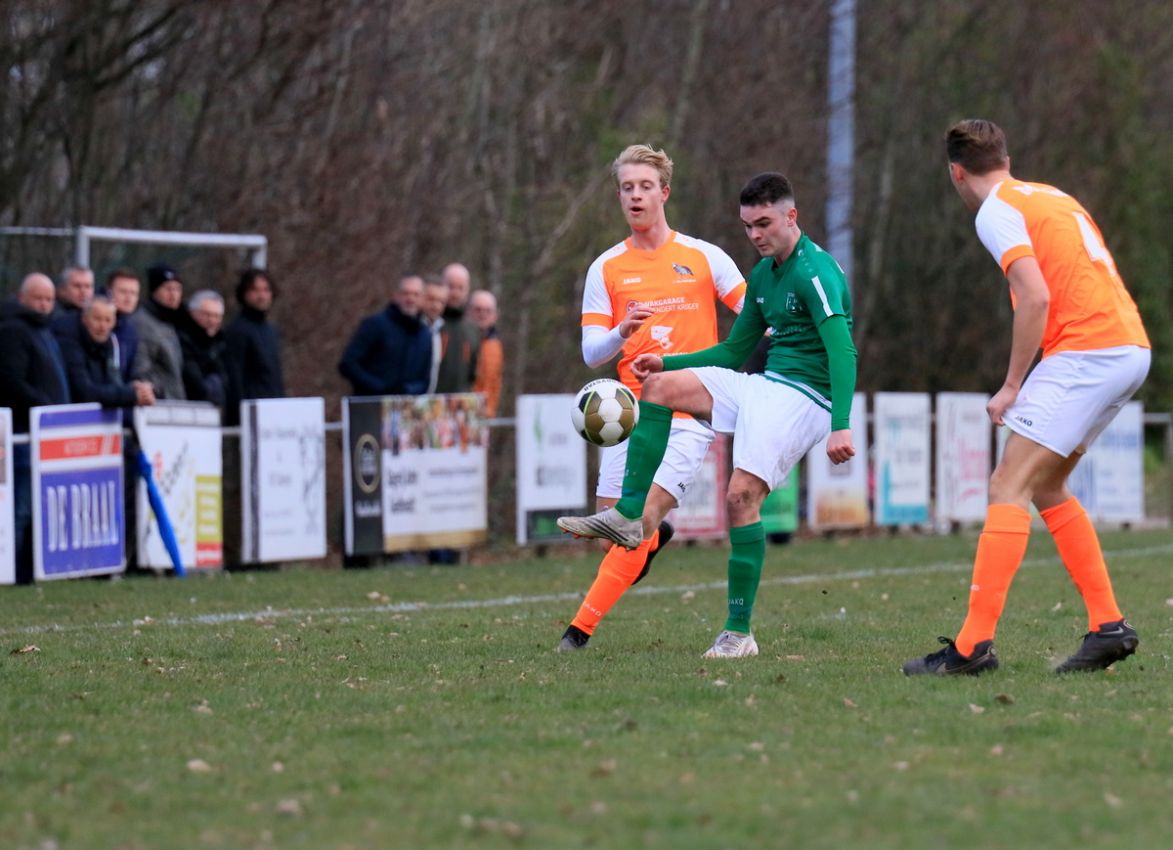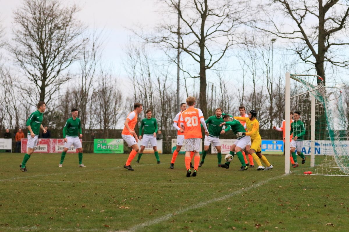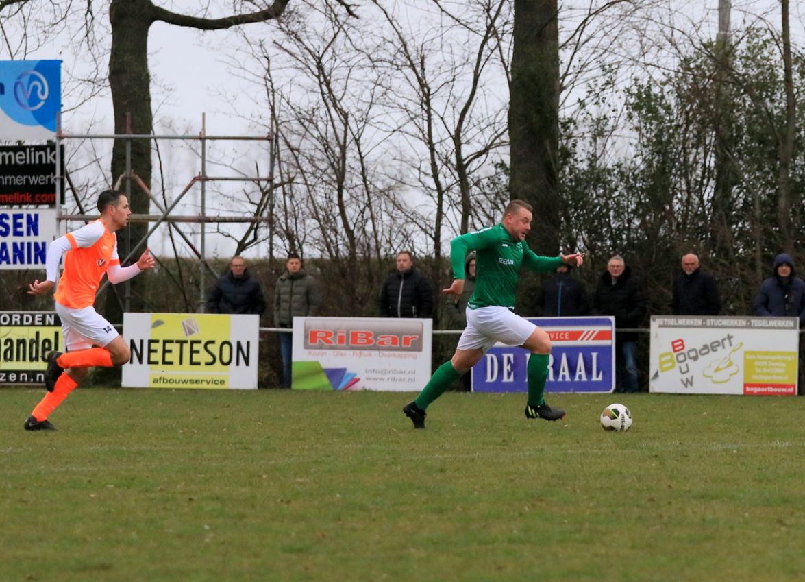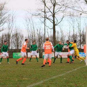De wedstrijd begon desastreus voor onze groen-witten, die al na twee minuten tegen een achterstand aankeken. Nadat Roy van der Staal onder de bal was doorgegaan kon Rowan Traas de bal oppikken waarna hij besloot op doel te schieten. Doelman Guido Vinke tastte mis op de inzet van Traas. De zeldzame fout van de routinier zorgde voor een vroeg 1-0 achterstand. Onze groen-witten gingen niet bij de pakken neer zitten en trokken in het vervolg van de 1e helft tegen de nummer vier van de ranglijst de wedstrijd volledig naar zich toe. Met veel strijdlust en met vlagen goed voetbal werden de bezoekers terug gedrongen op eigen helft en er kwamen kansen, veel kansen, maar doelpunten bleven uit.