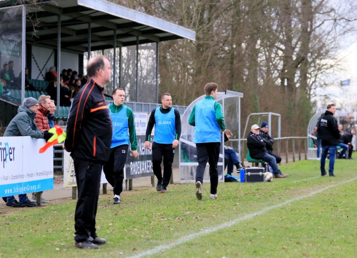 Ook in het laatste kwartier voor rust kwamen er kansen om de leiding te nemen, maar steeds hadden ze net niet het geluk aan hun zijde. De verdediging van de bezoekers hadden de nodige moeite met “handenbinder” Stijn Dekker en moesten hem vaak door middel van een overtreding afstoppen. Bovendien was Wout Hamelink vaak ongelukkig in de keuzes die hij maakte. Een aantal keren probeerde hij met een steekbal een ploeggenoot te bereiken, maar steeds zat er een voet van de tegenstander tussen. Daardoor bleef het 1-1 tot aan het rustsignaal van de goed leidende Arjan Deurlo uit Tholen.