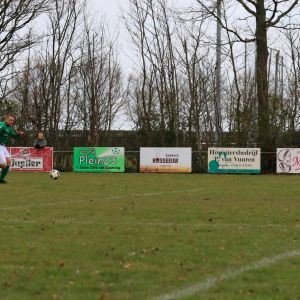Onze groen-witten stopten veel energie in de wedstrijd, maar wat ze ook probeerden, het lukte niet om het net te vinden. Helaas was het ontbreken van scorend vermogen ook nu weer het manco van de ploeg en daar hadden de bezoekers veel minder problemen mee. Na een uur wedstrijd kon Patrijzen counteren en stond het zeer tegen de verhouding in ineens 1-2. Weer was het Rowan Traas, die deze keer Yannick van der Hooft makkelijk van zich afschudde en alleen op Guido Vinke af stevende. Met de nodige precisie schoof hij de bal kort voor de achterlijn langs de uitkomende Guido Vinke in het doel. Een mokerslag voor onze groen-witten, die dit ondanks verwoede pogingen, niet meer te boven zou komen. Toch was er geen sprake van capitulatie, want alsof er niets was gebeurd ging de ploeg op zoek naar de gelijkmaker en was daar via Koen Post in de 69e minuut heel dichtbij. Uit een hoekschop van Senna Bunt zag de Zaamslag aanvoerder zijn kopbal van dichtbij op de paal uiteenspatten. Het geluk was ver te zoeken voor onze groen-witten en daar mochten de bezoekers juist weer niet over klagen.
