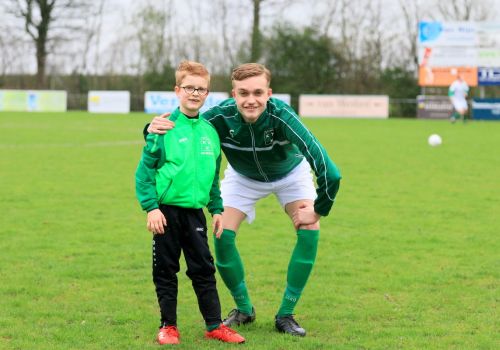 Mees Kaptein met middenvelder Senna Bunt
